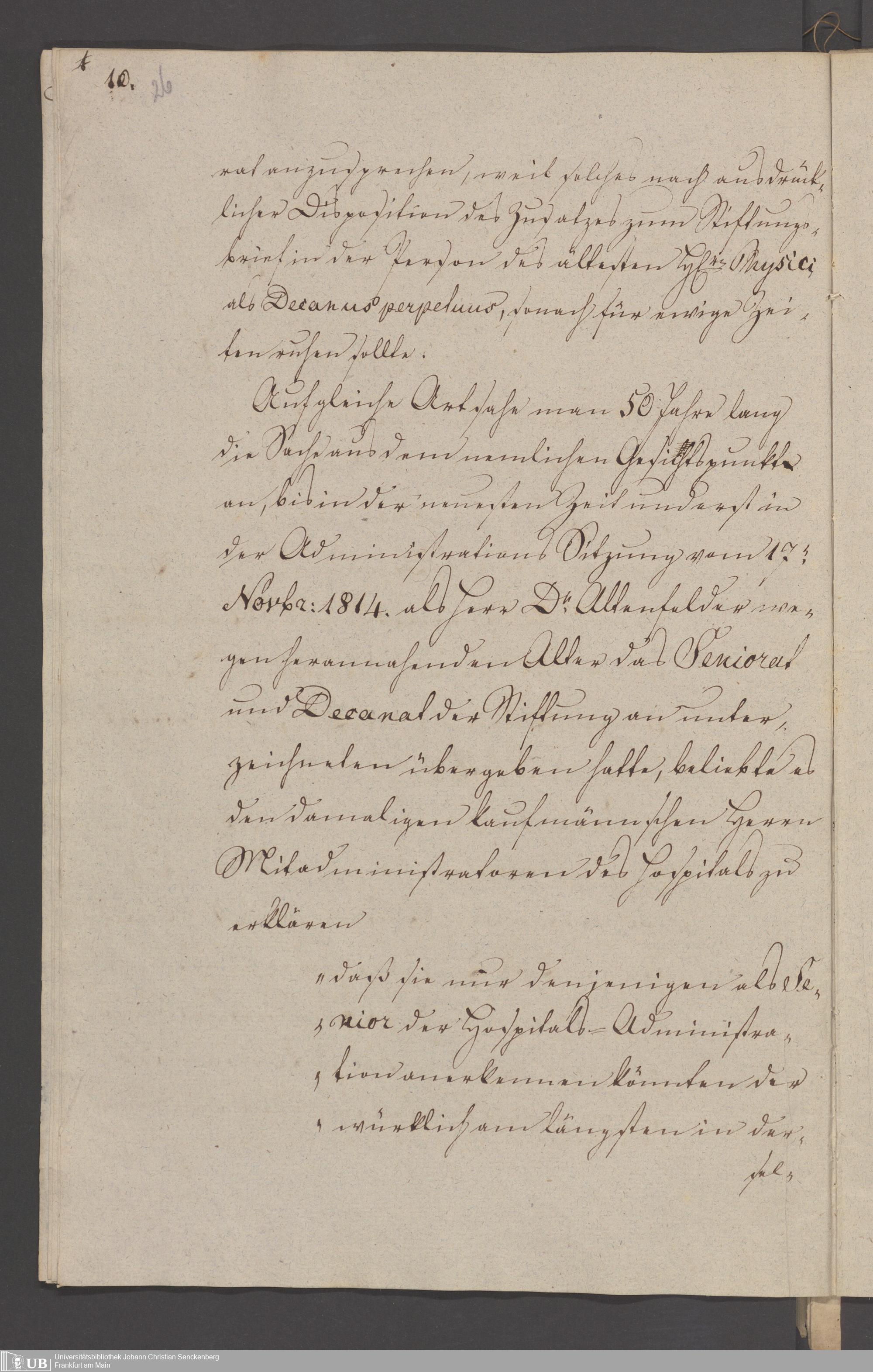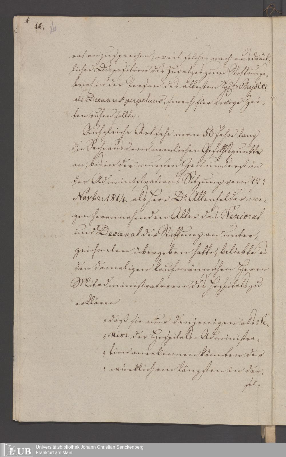 B 5 Dr. Senckenbergische Stiftung, 3 - Streit der ärztlichen und kaufmännischen Administration um das Präsidium (p. Na J.C.S. III.1.346)
