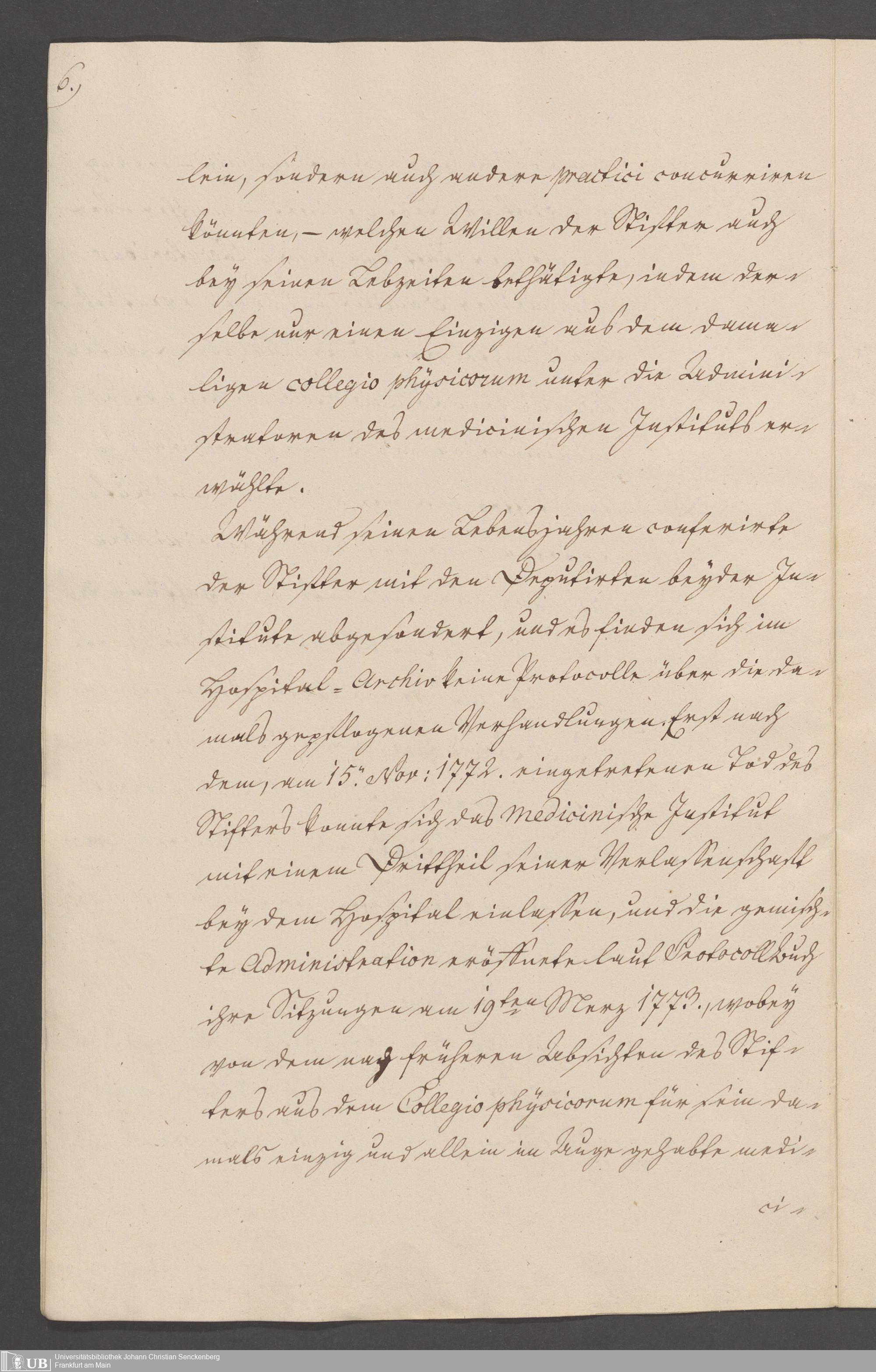B 5 Dr. Senckenbergische Stiftung, 3 - Streit der ärztlichen und kaufmännischen Administration um das Präsidium (p. Na J.C.S. III.1.346)