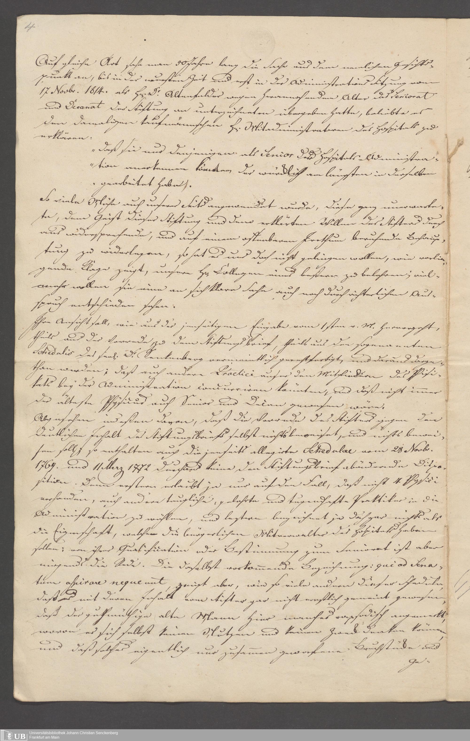 B 5 Dr. Senckenbergische Stiftung, 3 - Streit der ärztlichen und kaufmännischen Administration um das Präsidium (p. Na J.C.S. III.1.346)