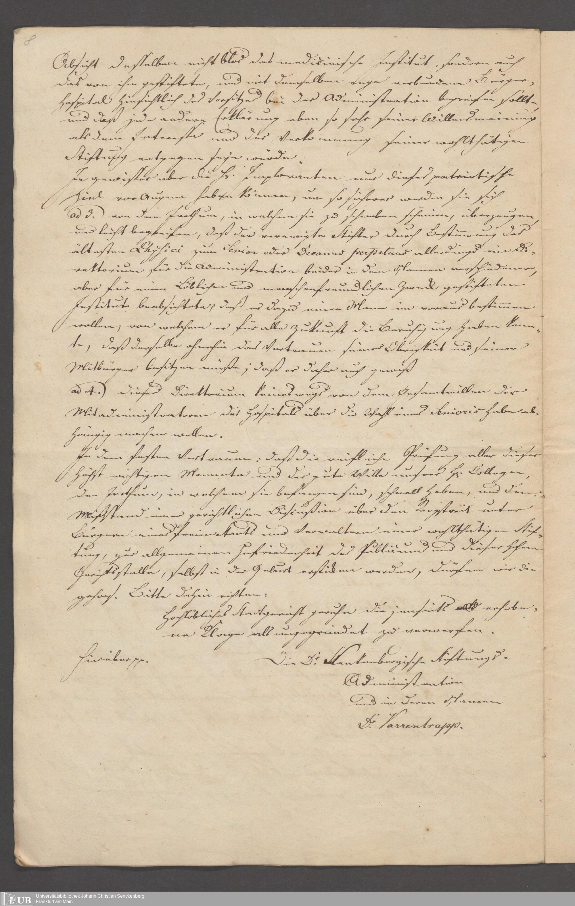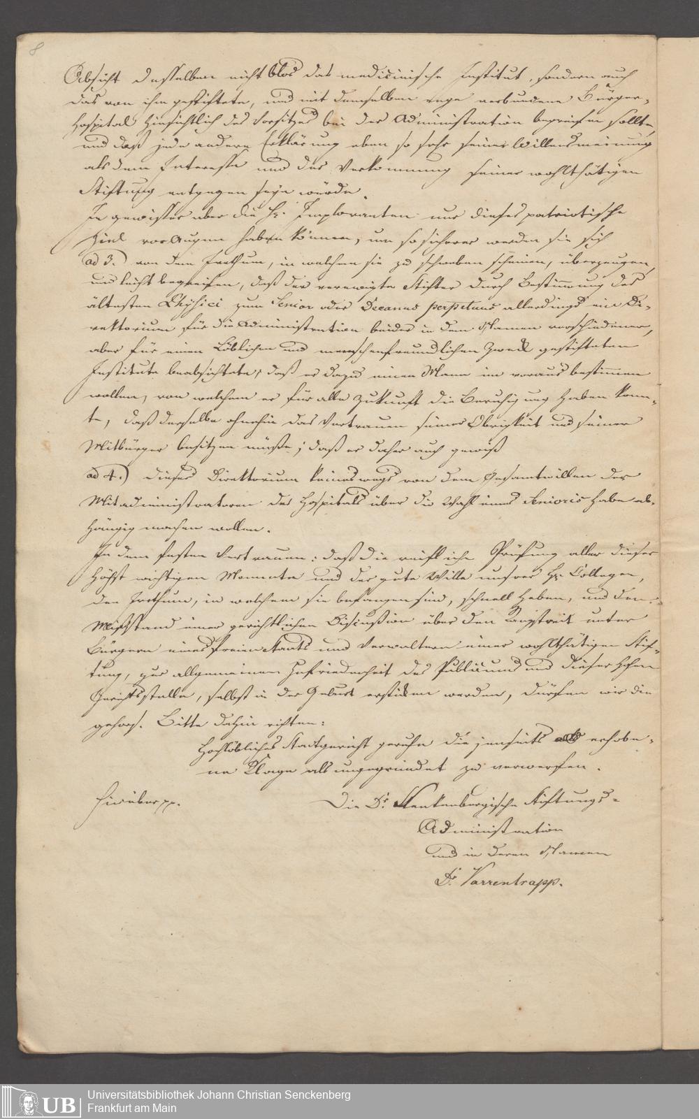 B 5 Dr. Senckenbergische Stiftung, 3 - Streit der ärztlichen und kaufmännischen Administration um das Präsidium (p. Na J.C.S. III.1.346)