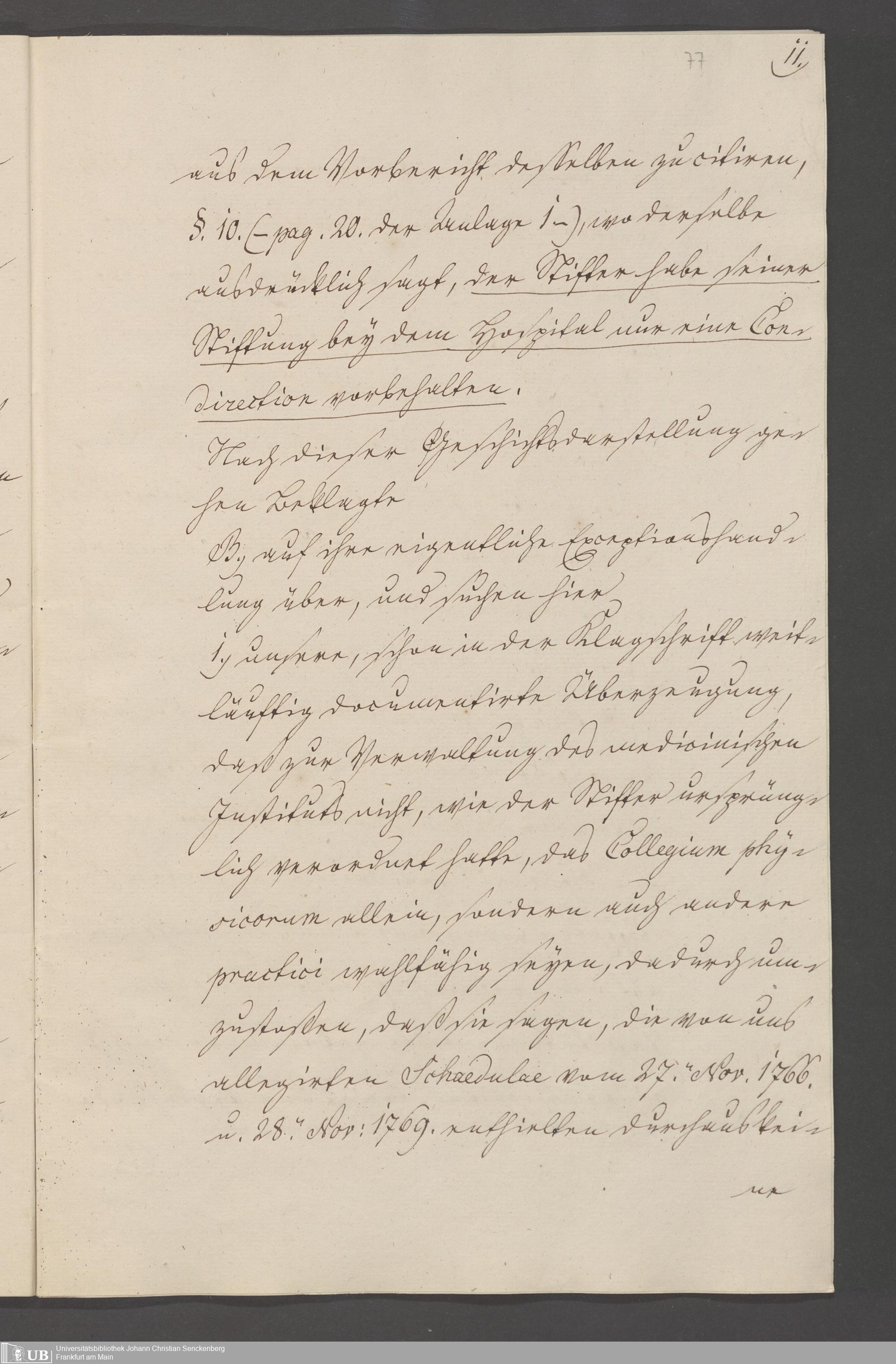 B 5 Dr. Senckenbergische Stiftung, 3 - Streit der ärztlichen und kaufmännischen Administration um das Präsidium (p. Na J.C.S. III.1.346)