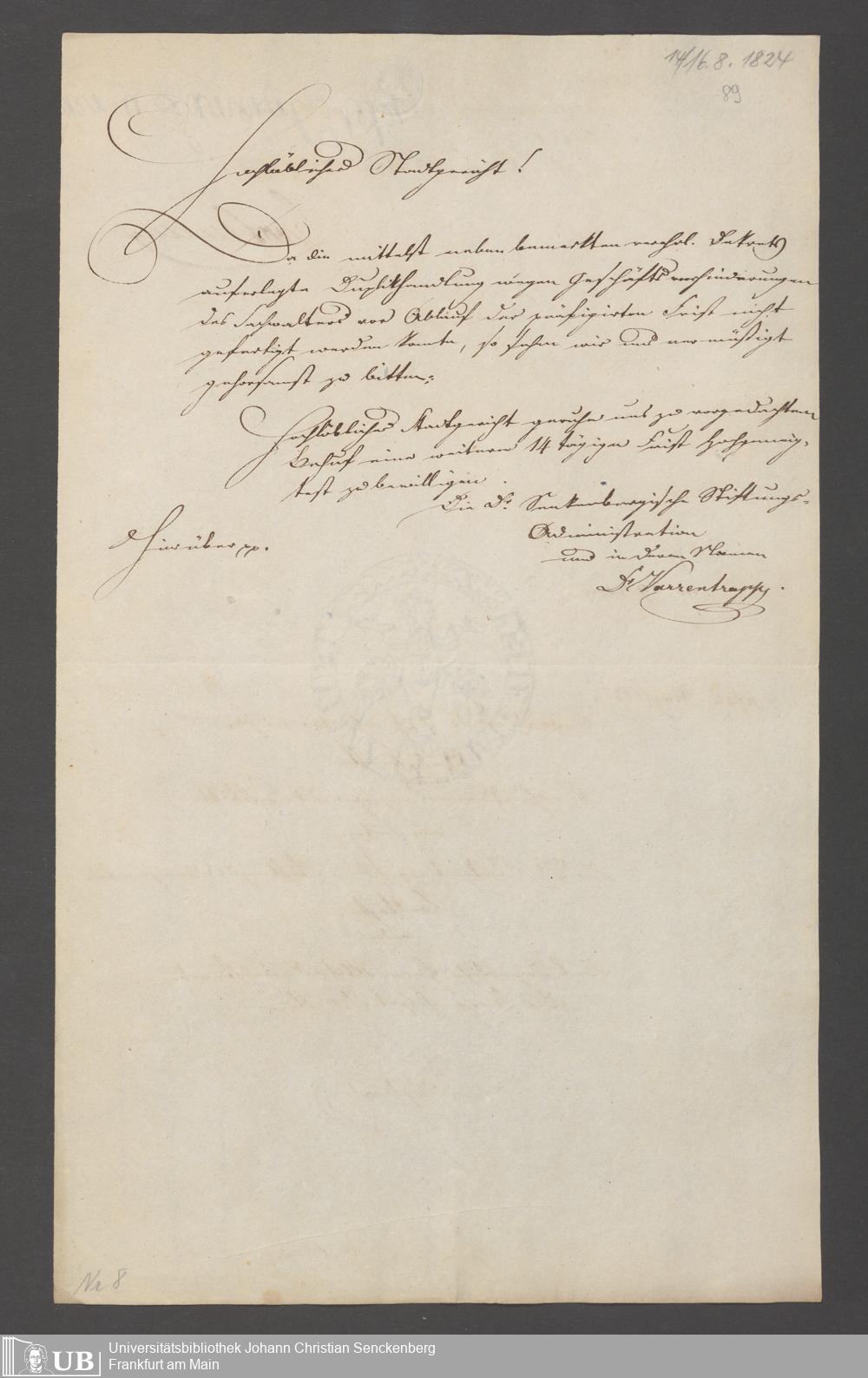 B 5 Dr. Senckenbergische Stiftung, 3 - Streit der ärztlichen und kaufmännischen Administration um das Präsidium (p. Na J.C.S. III.1.346)