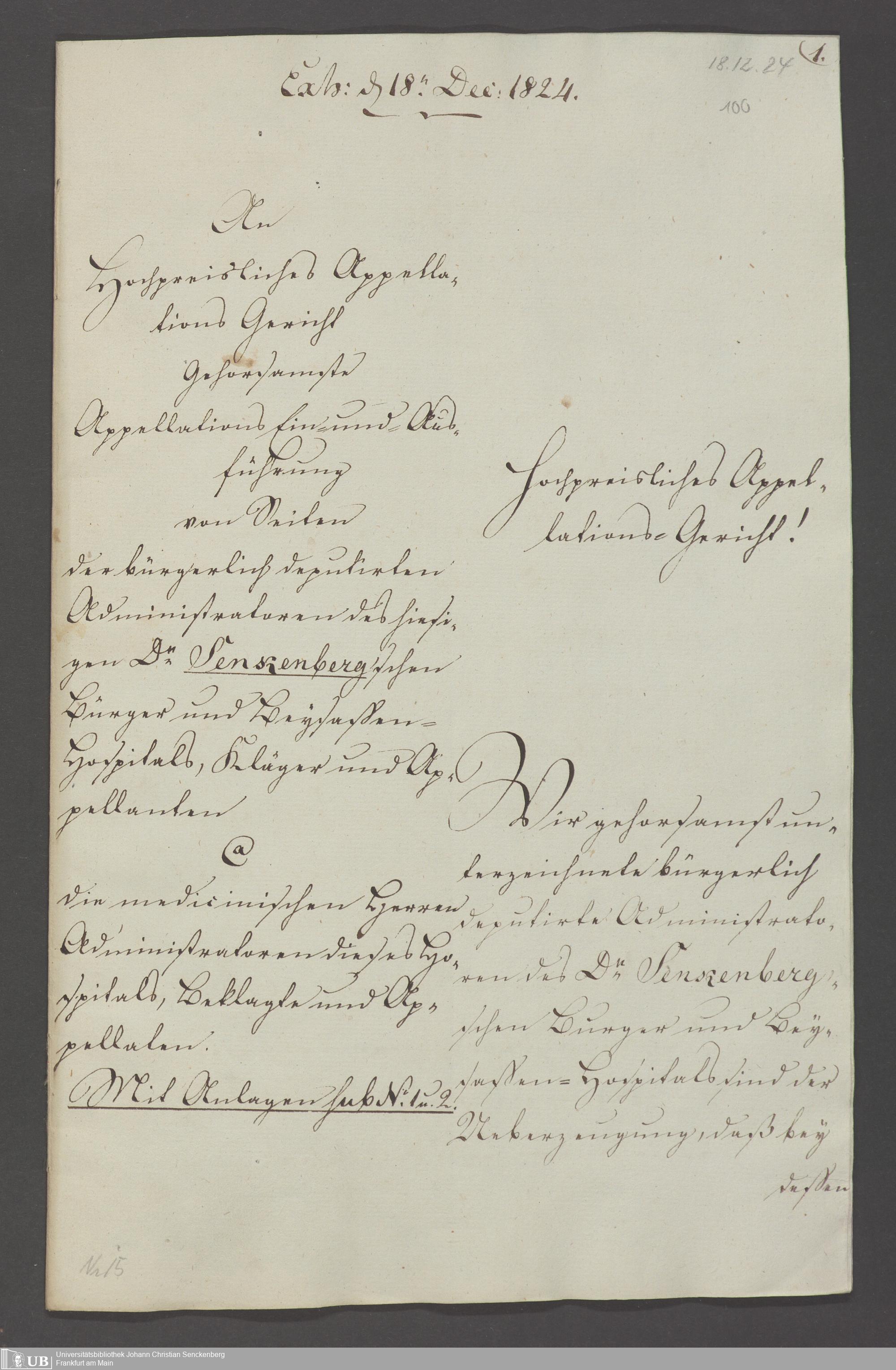 B 5 Dr. Senckenbergische Stiftung, 3 - Streit der ärztlichen und kaufmännischen Administration um das Präsidium (p. Na J.C.S. III.1.346)