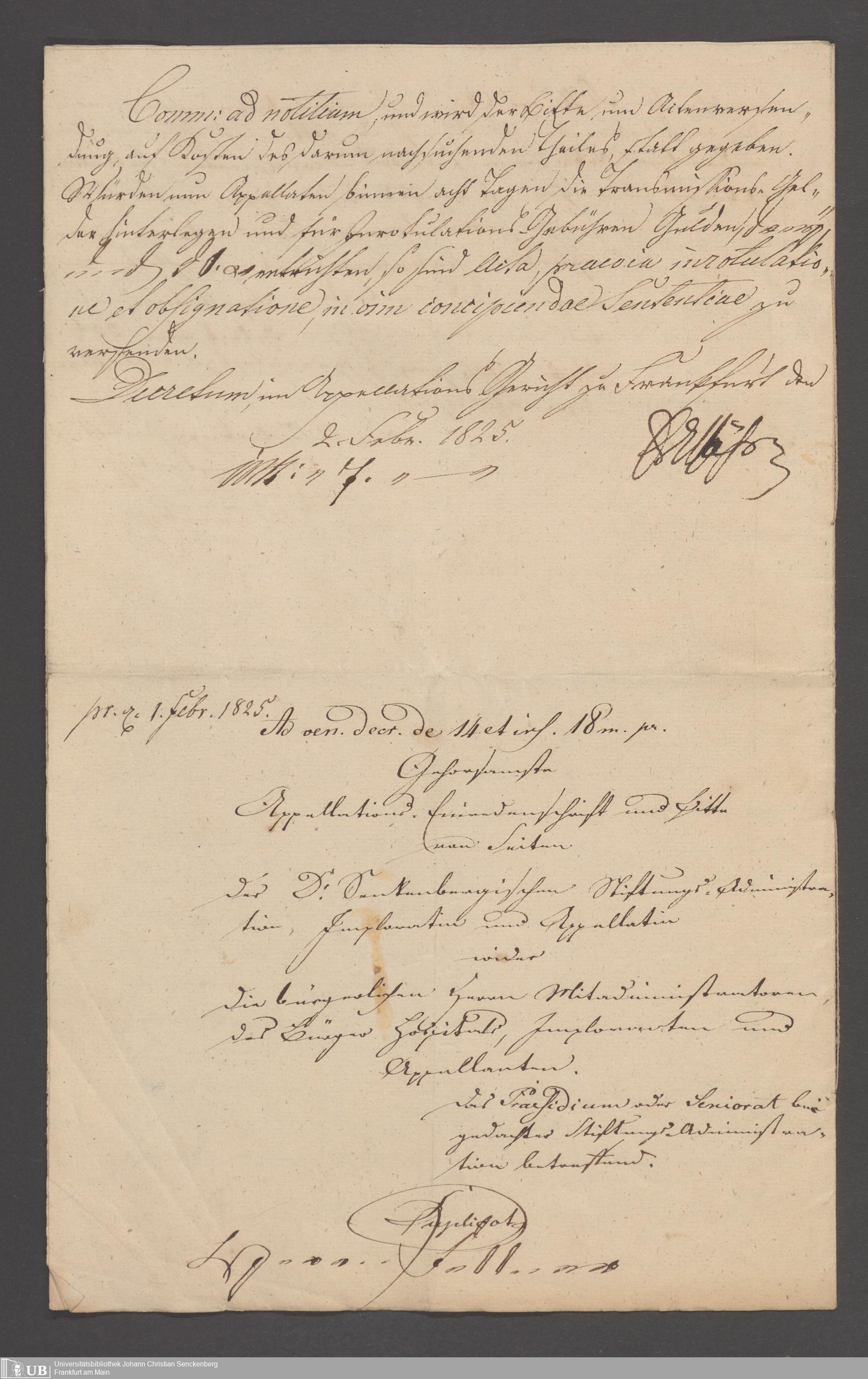 B 5 Dr. Senckenbergische Stiftung, 3 - Streit der ärztlichen und kaufmännischen Administration um das Präsidium (p. Na J.C.S. III.1.346)