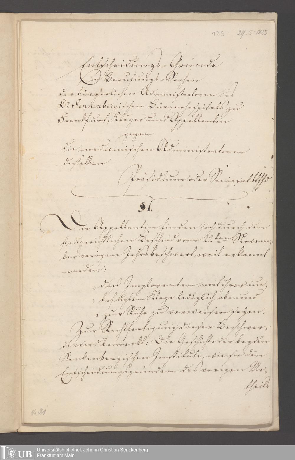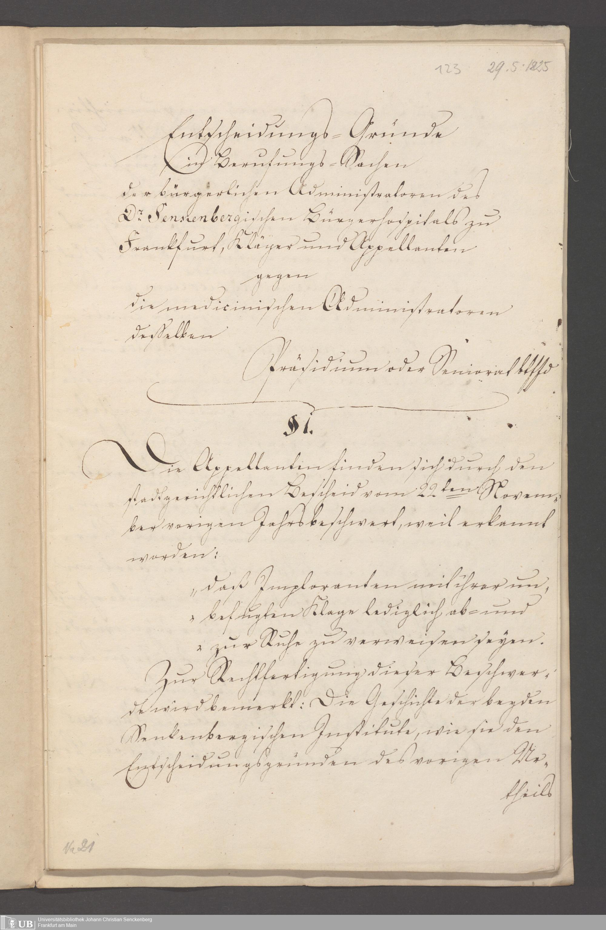 B 5 Dr. Senckenbergische Stiftung, 3 - Streit der ärztlichen und kaufmännischen Administration um das Präsidium (p. Na J.C.S. III.1.346)