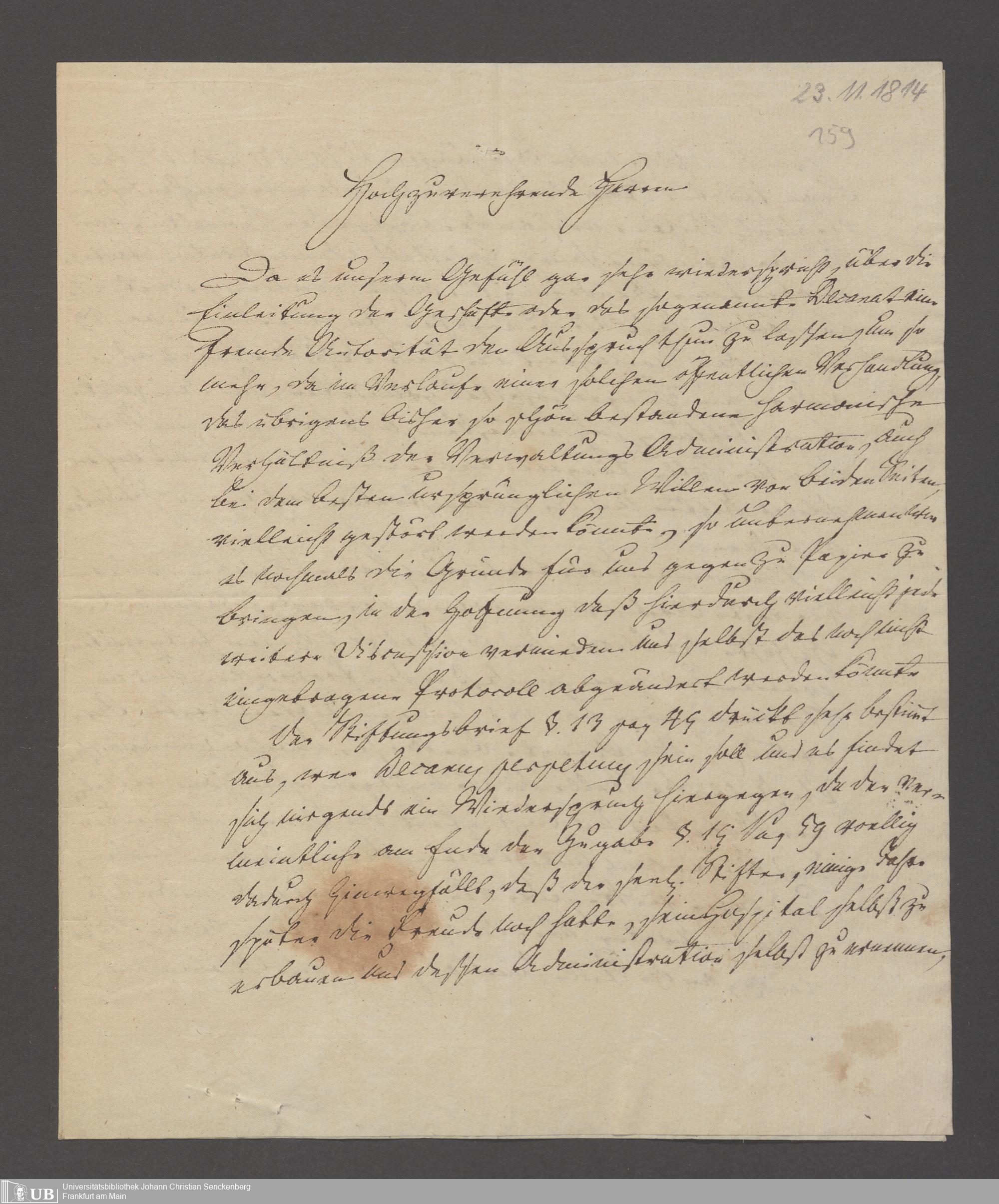 B 5 Dr. Senckenbergische Stiftung, 3 - Streit der ärztlichen und kaufmännischen Administration um das Präsidium (p. Na J.C.S. III.1.346)