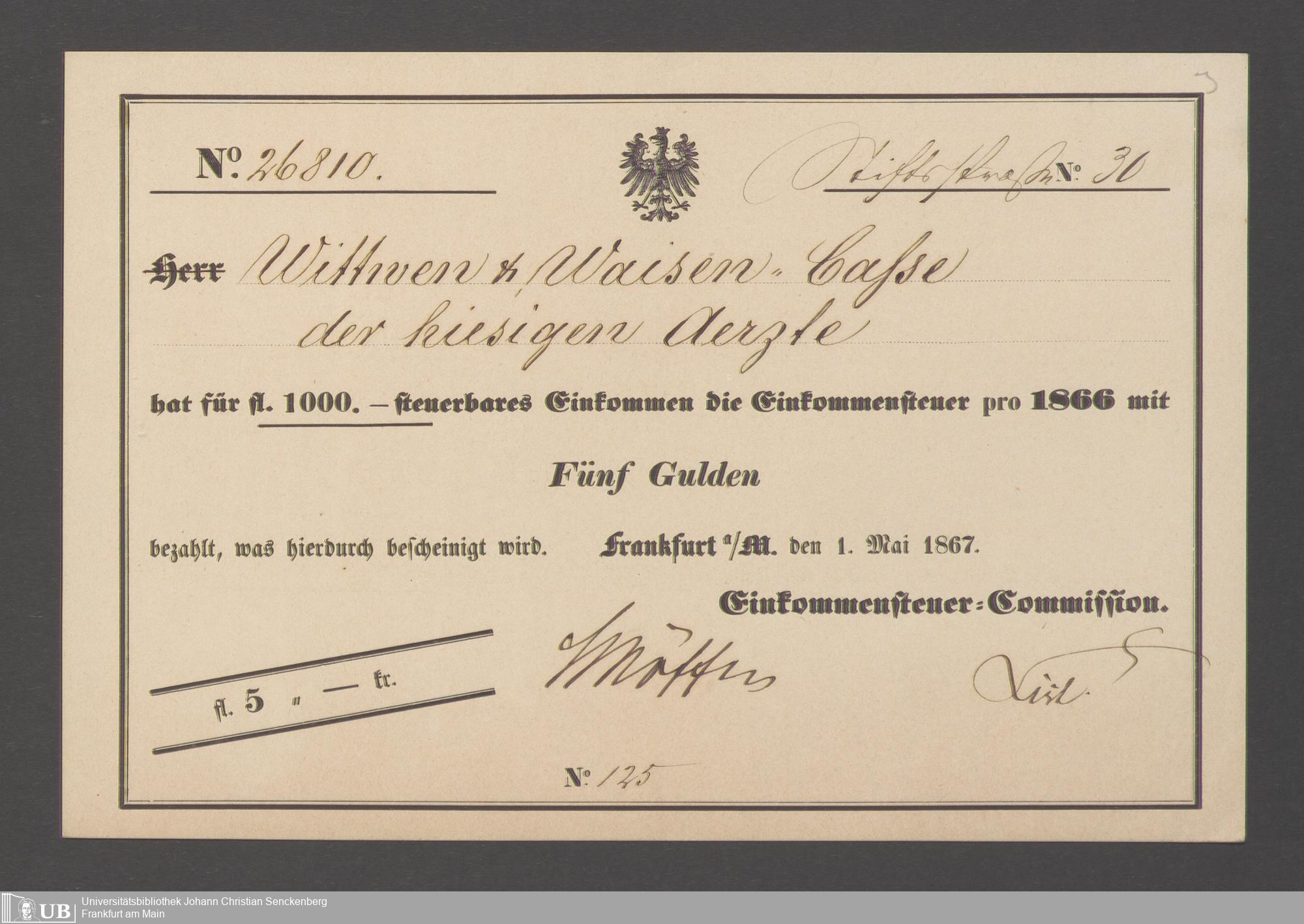 B 5 Dr. Senckenbergische Stiftung, 143 - Witwenkasse V