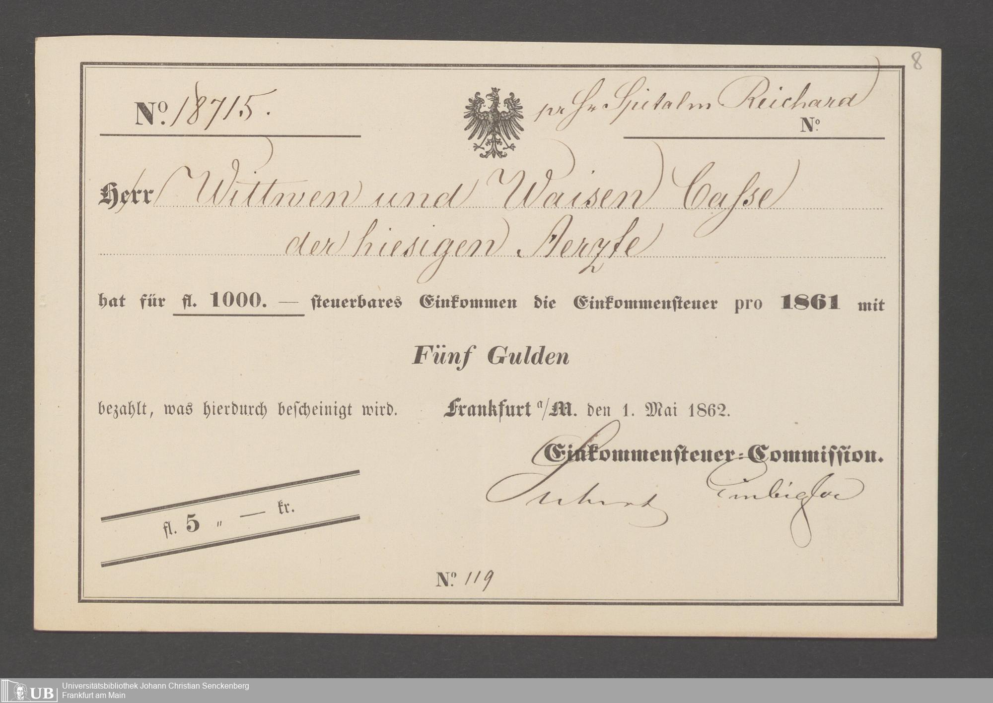 B 5 Dr. Senckenbergische Stiftung, 143 - Witwenkasse V