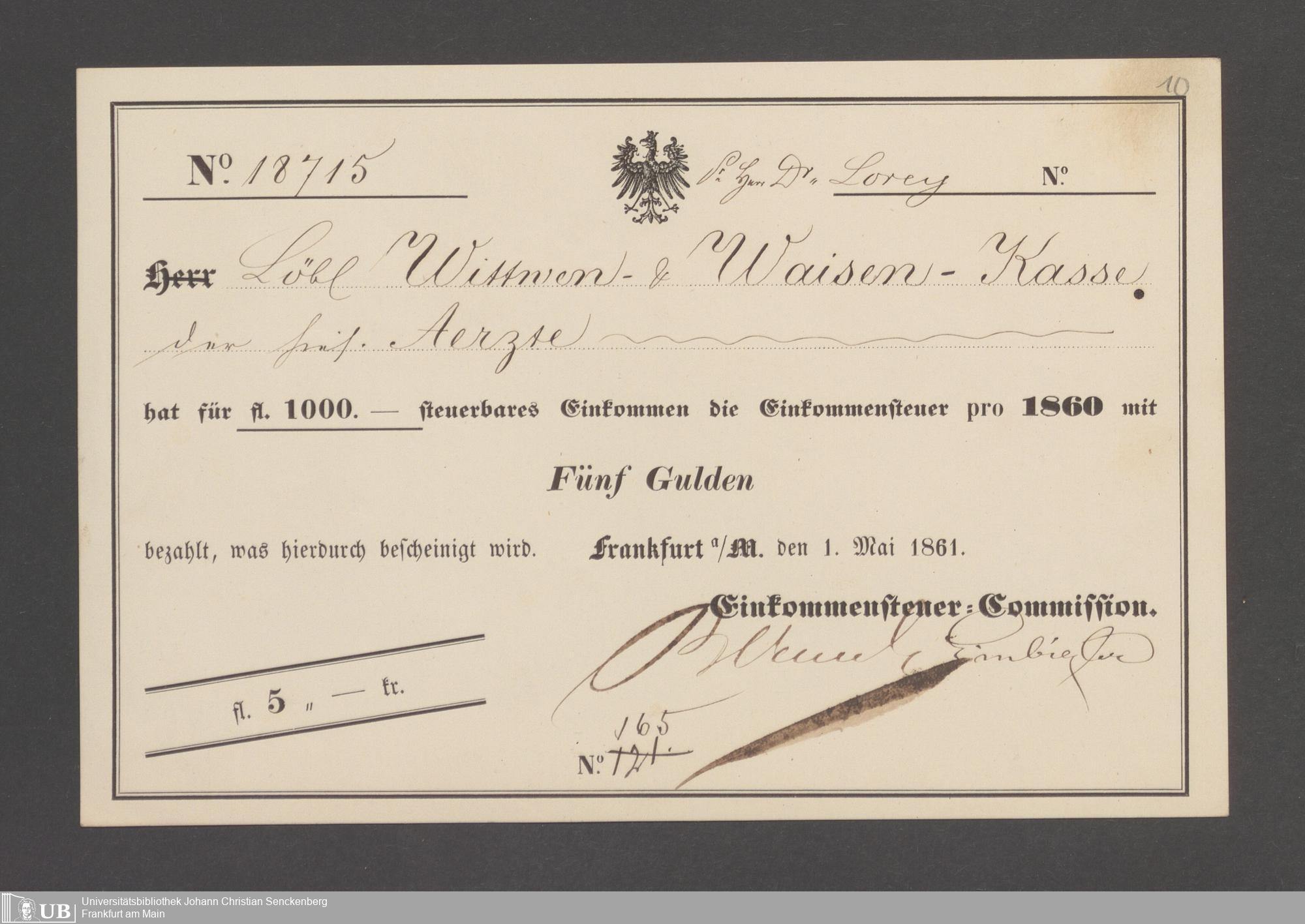 B 5 Dr. Senckenbergische Stiftung, 143 - Witwenkasse V