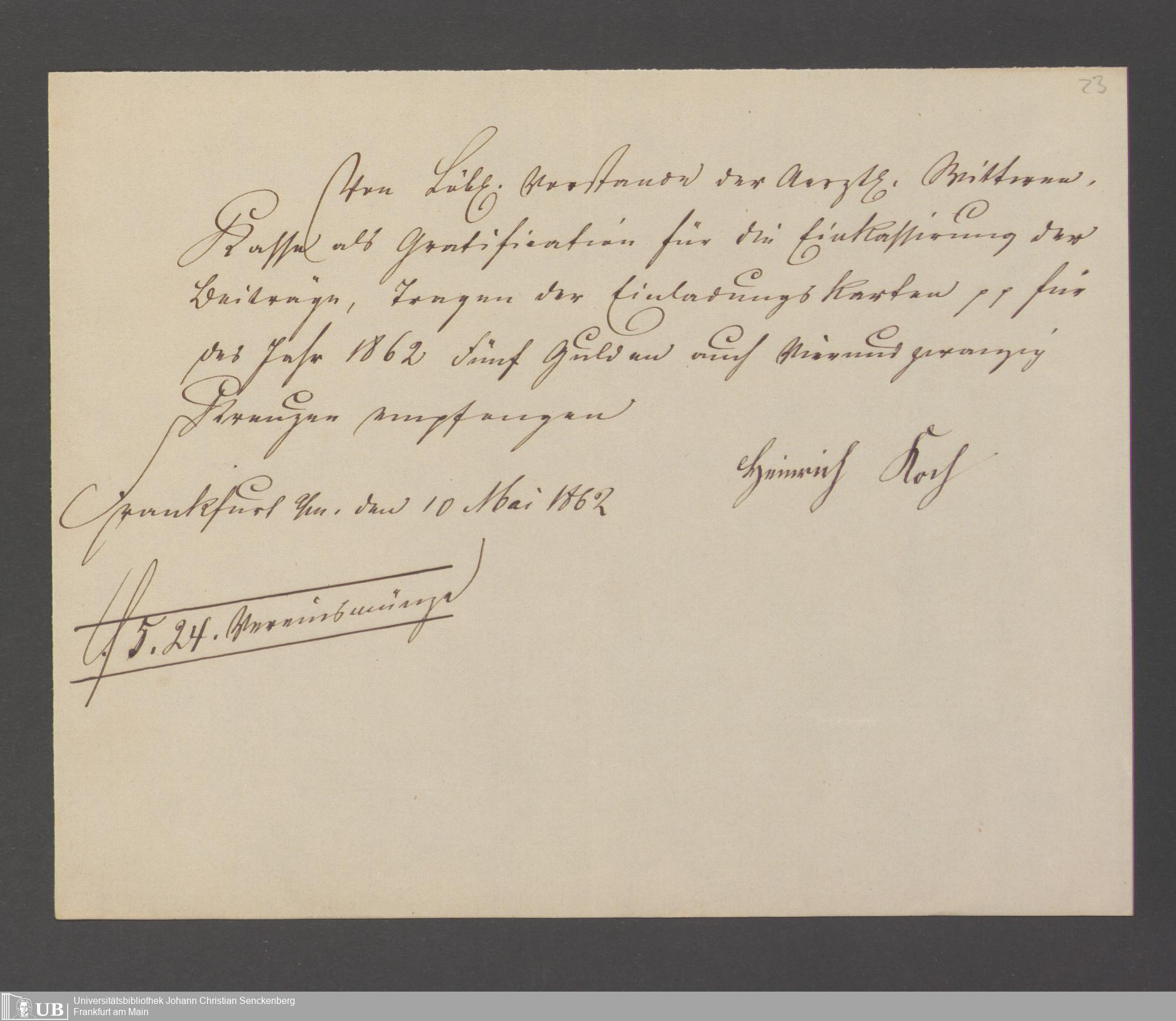 B 5 Dr. Senckenbergische Stiftung, 143 - Witwenkasse V