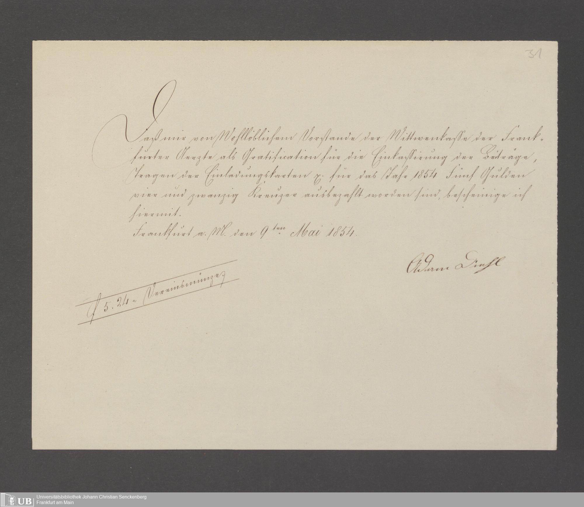 B 5 Dr. Senckenbergische Stiftung, 143 - Witwenkasse V