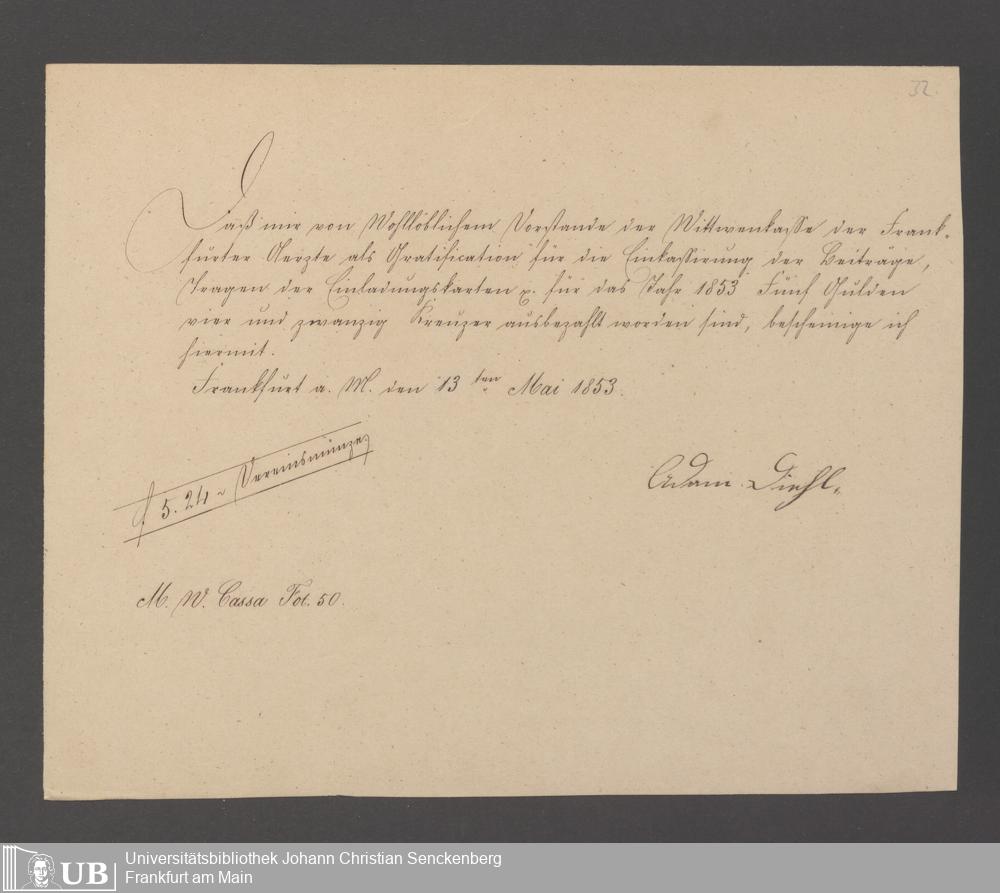 B 5 Dr. Senckenbergische Stiftung, 143 - Witwenkasse V