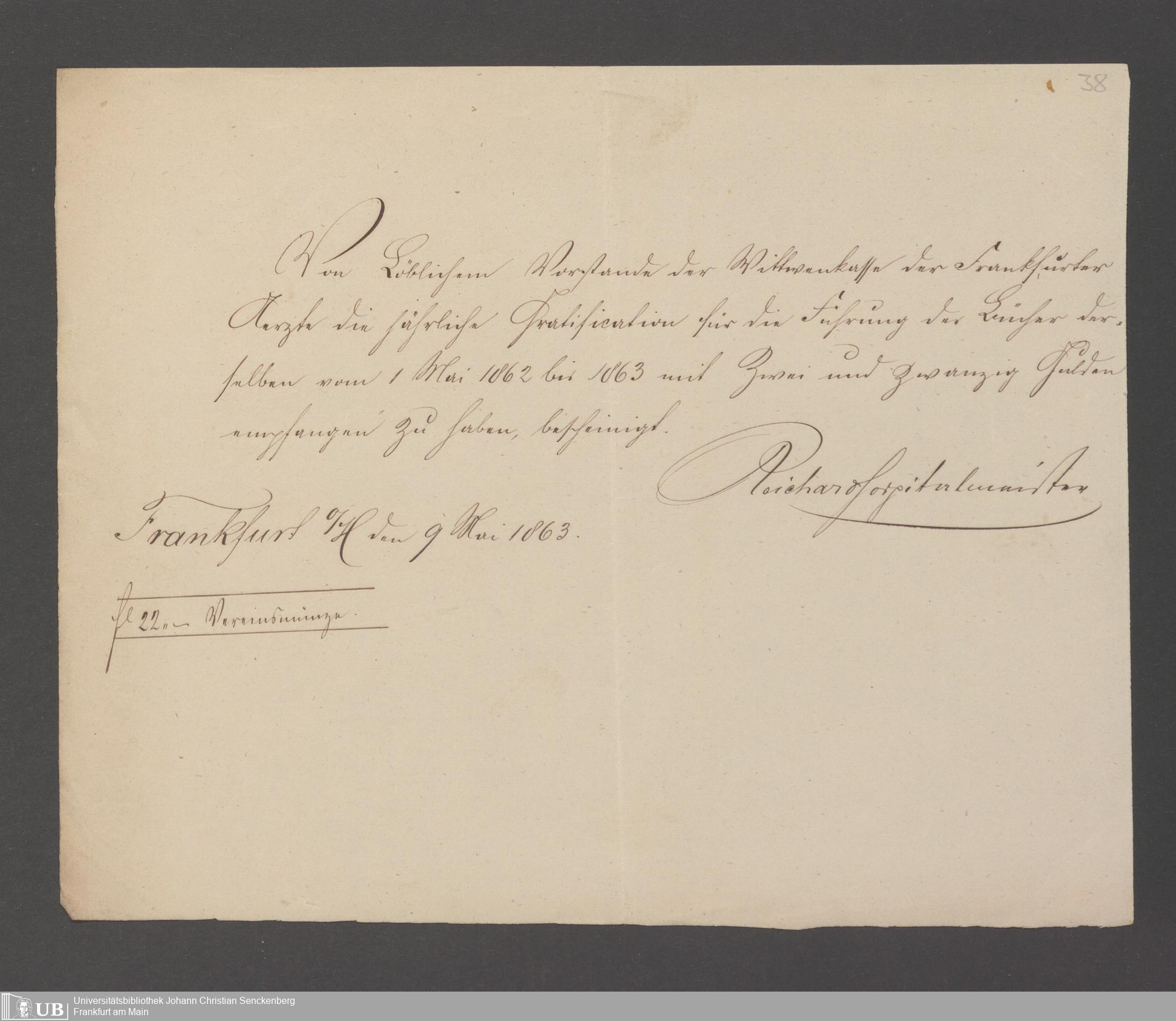 B 5 Dr. Senckenbergische Stiftung, 143 - Witwenkasse V