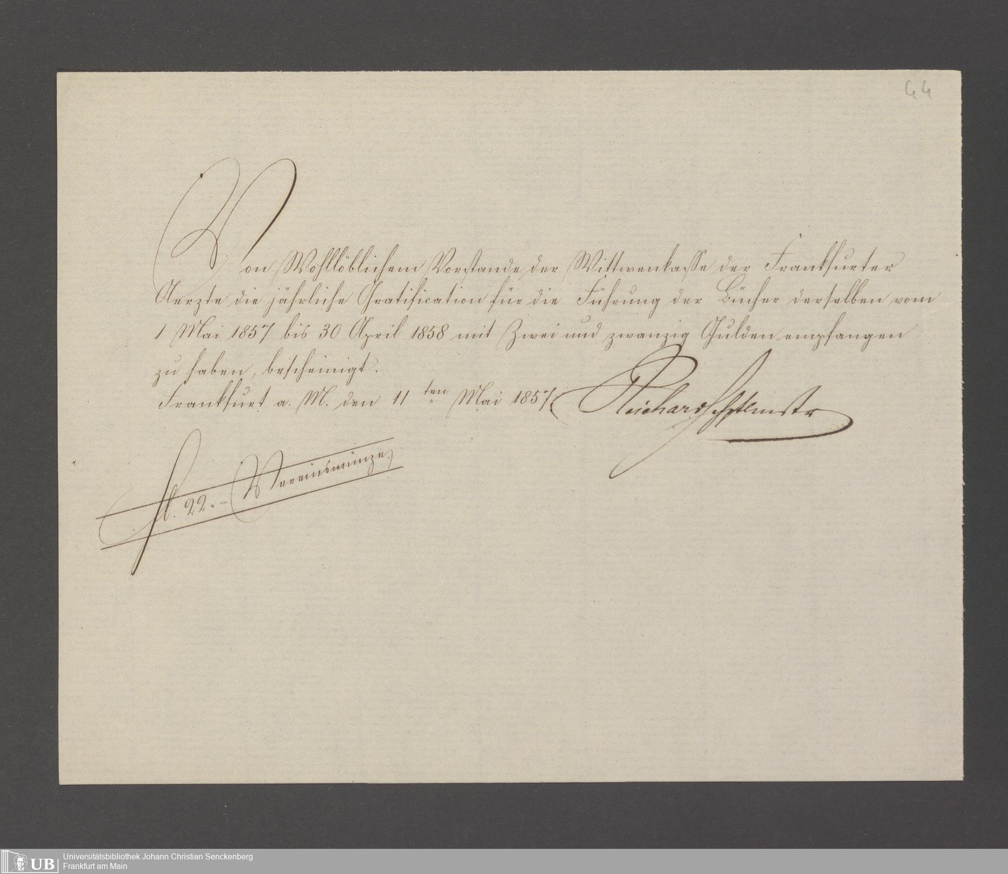B 5 Dr. Senckenbergische Stiftung, 143 - Witwenkasse V