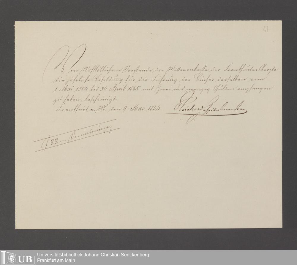 B 5 Dr. Senckenbergische Stiftung, 143 - Witwenkasse V