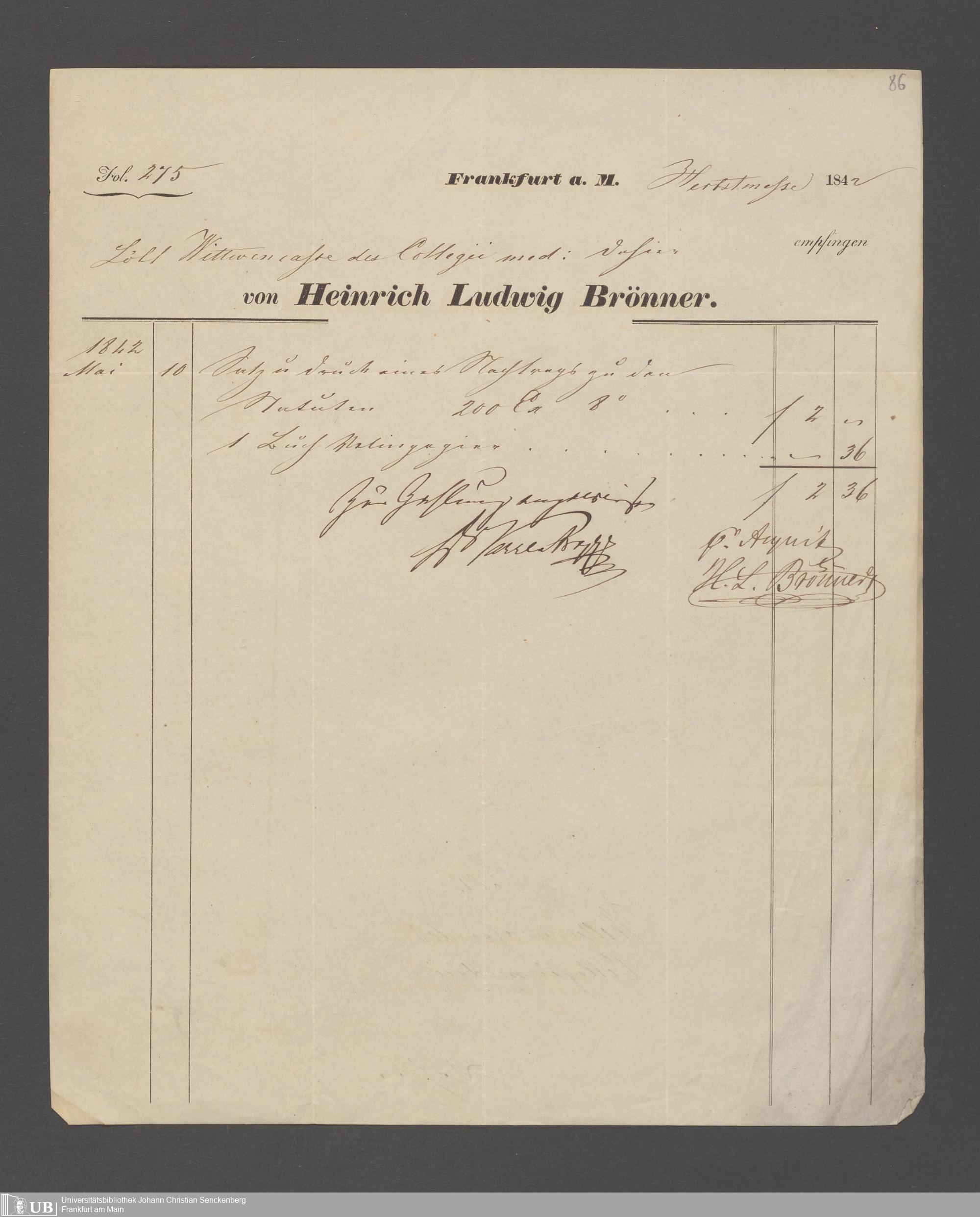 B 5 Dr. Senckenbergische Stiftung, 143 - Witwenkasse V