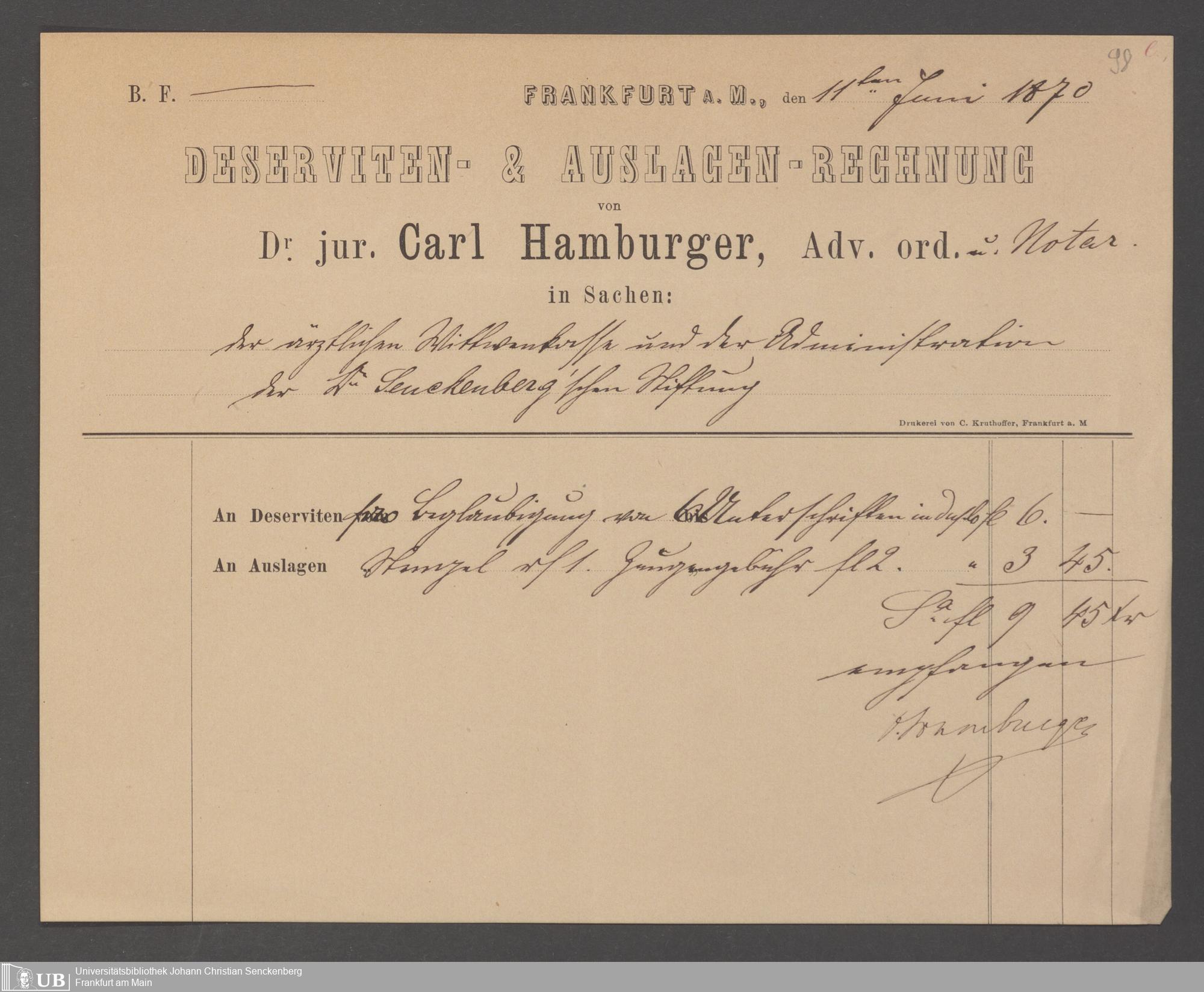 B 5 Dr. Senckenbergische Stiftung, 143 - Witwenkasse V