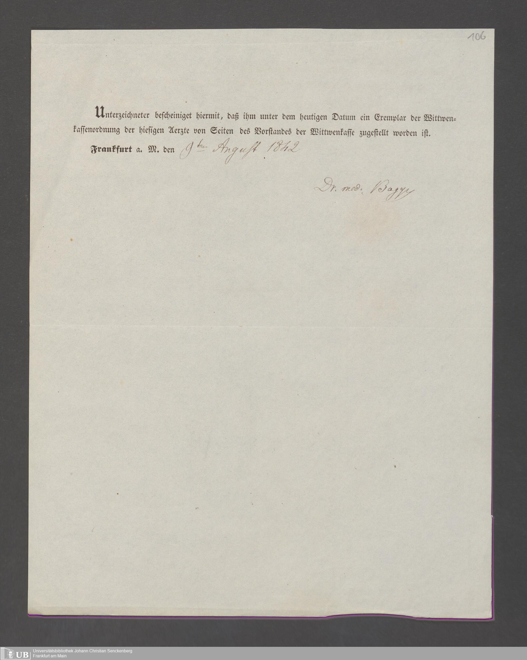 B 5 Dr. Senckenbergische Stiftung, 143 - Witwenkasse V
