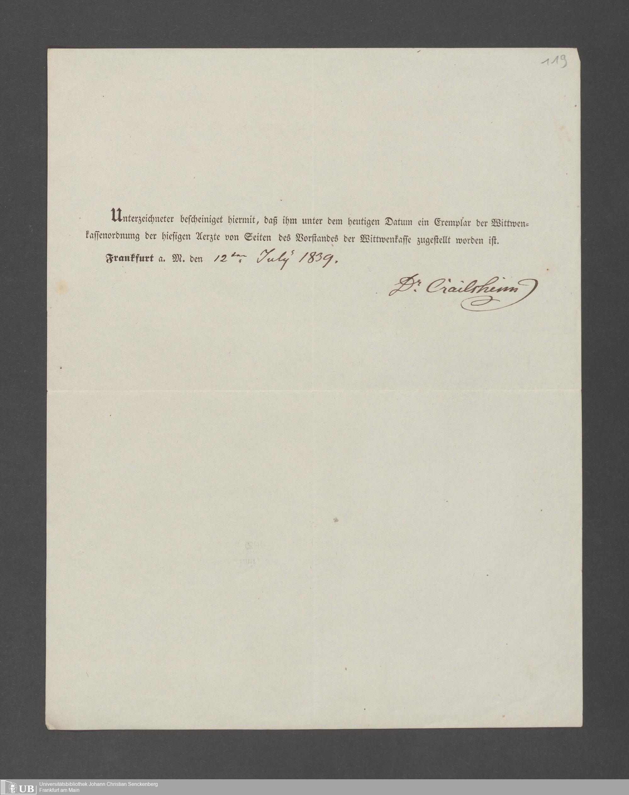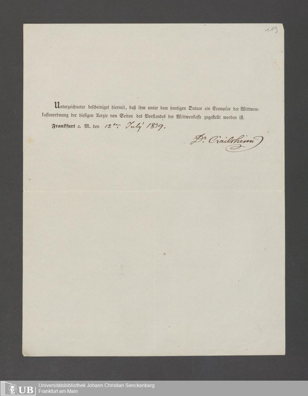 B 5 Dr. Senckenbergische Stiftung, 143 - Witwenkasse V