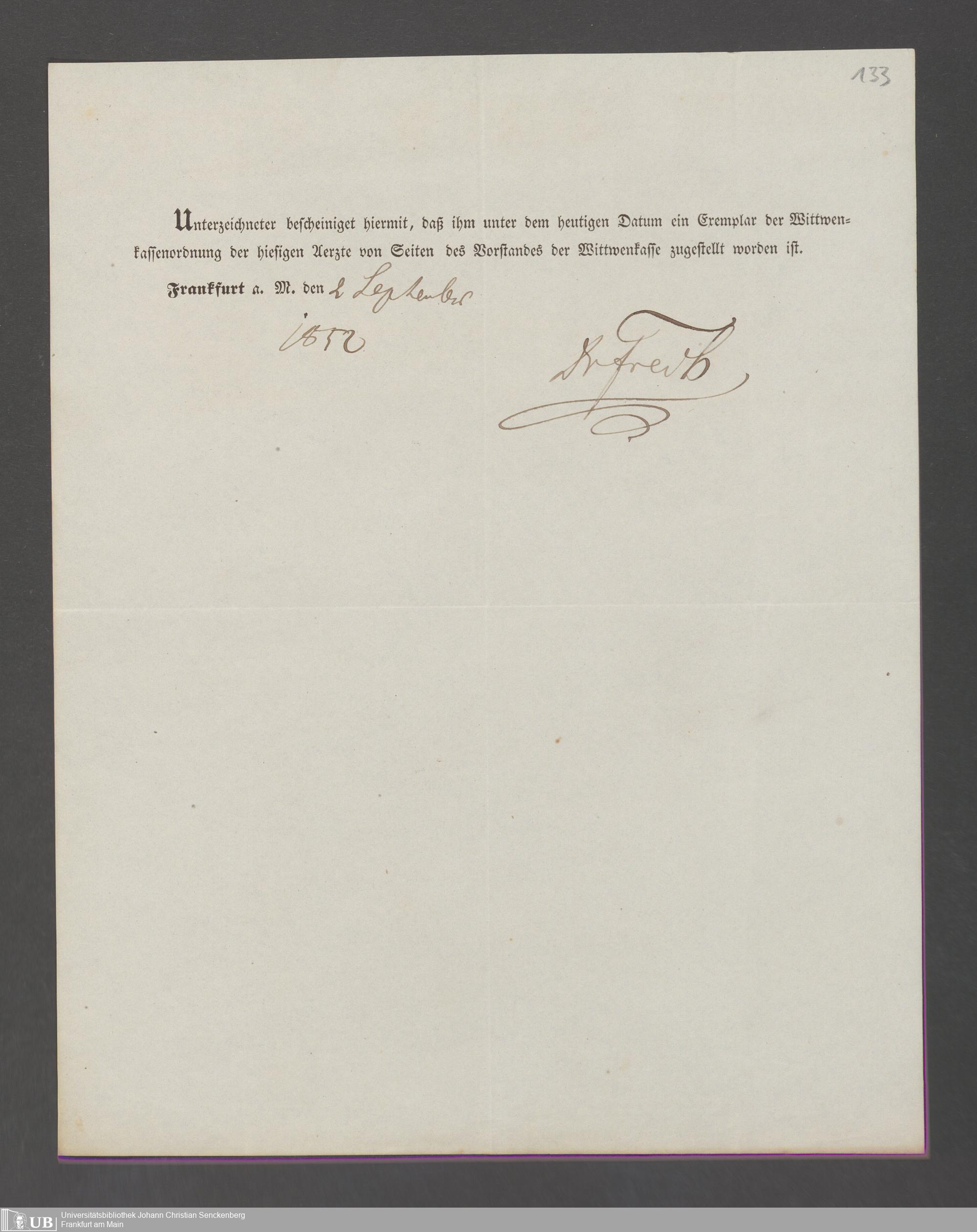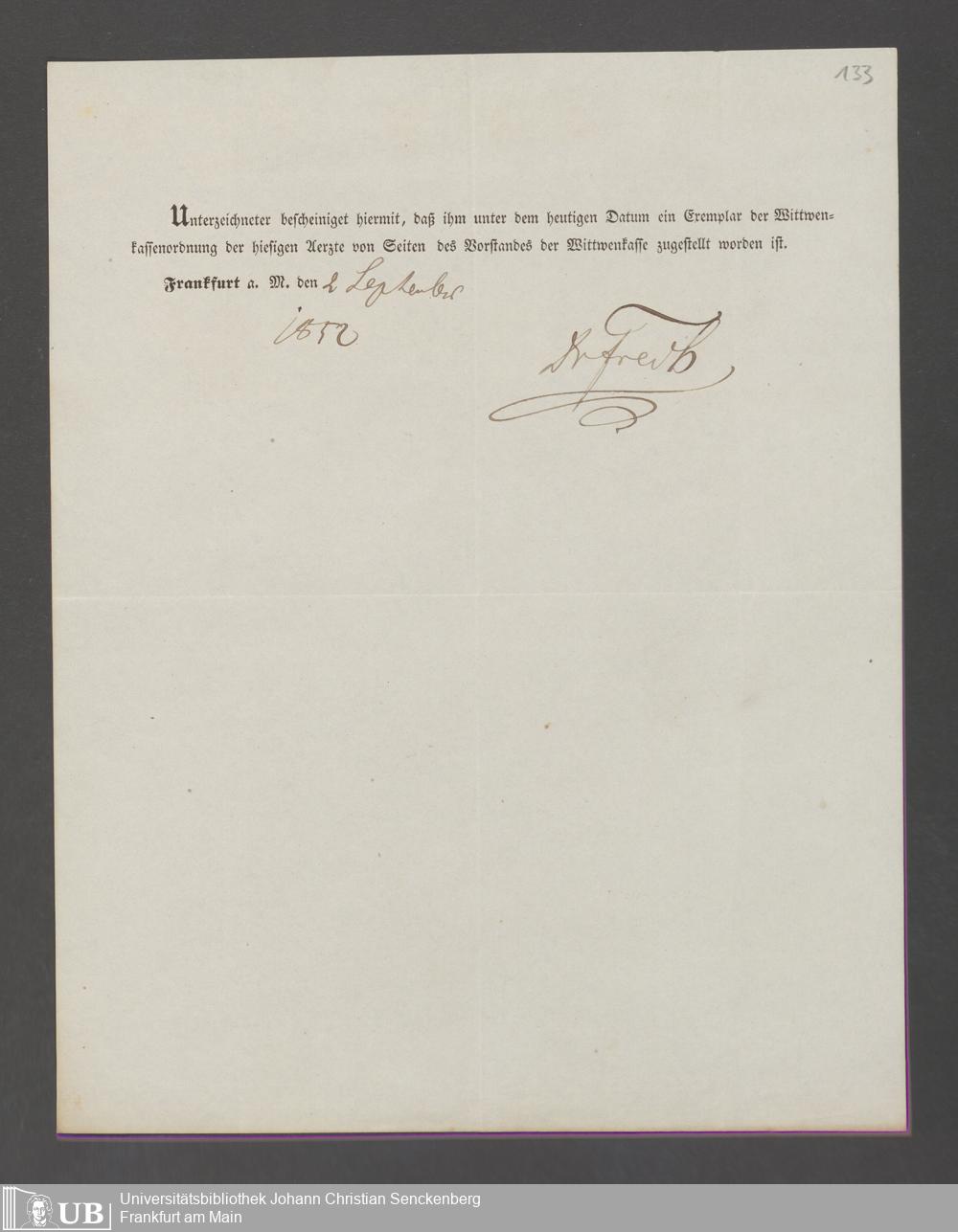 B 5 Dr. Senckenbergische Stiftung, 143 - Witwenkasse V