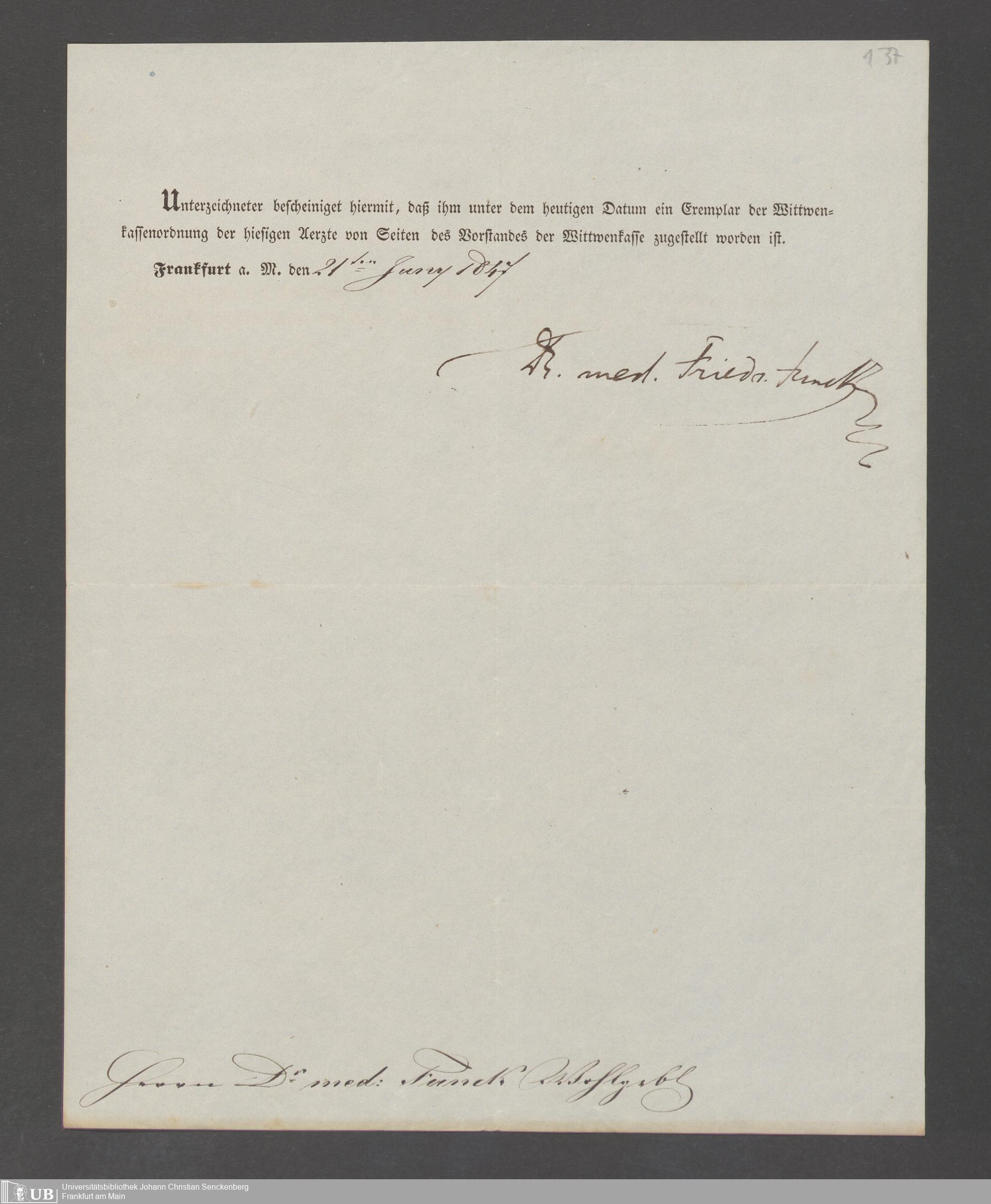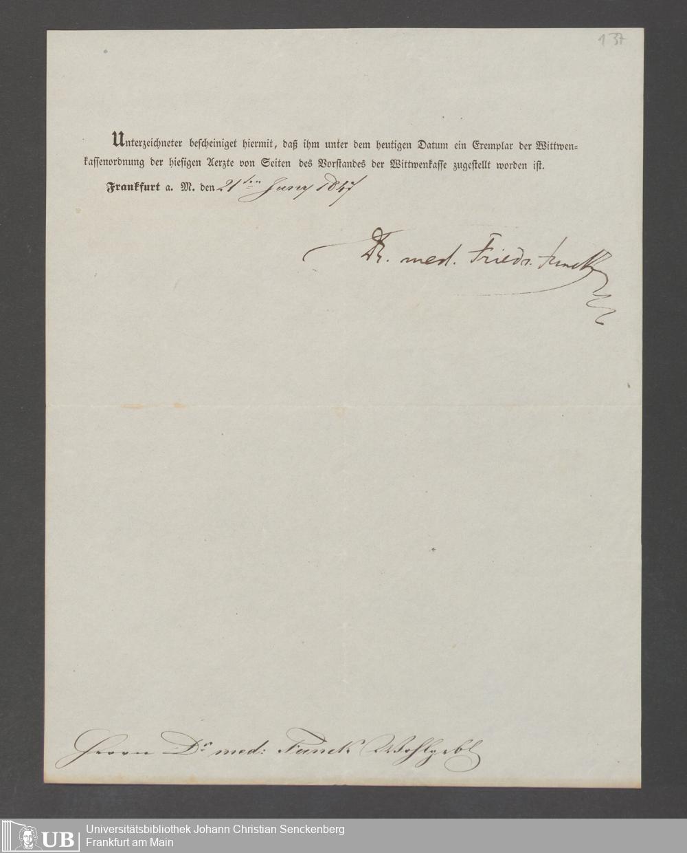 B 5 Dr. Senckenbergische Stiftung, 143 - Witwenkasse V