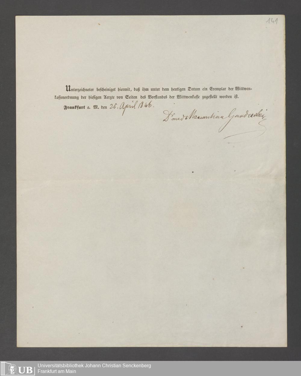 B 5 Dr. Senckenbergische Stiftung, 143 - Witwenkasse V