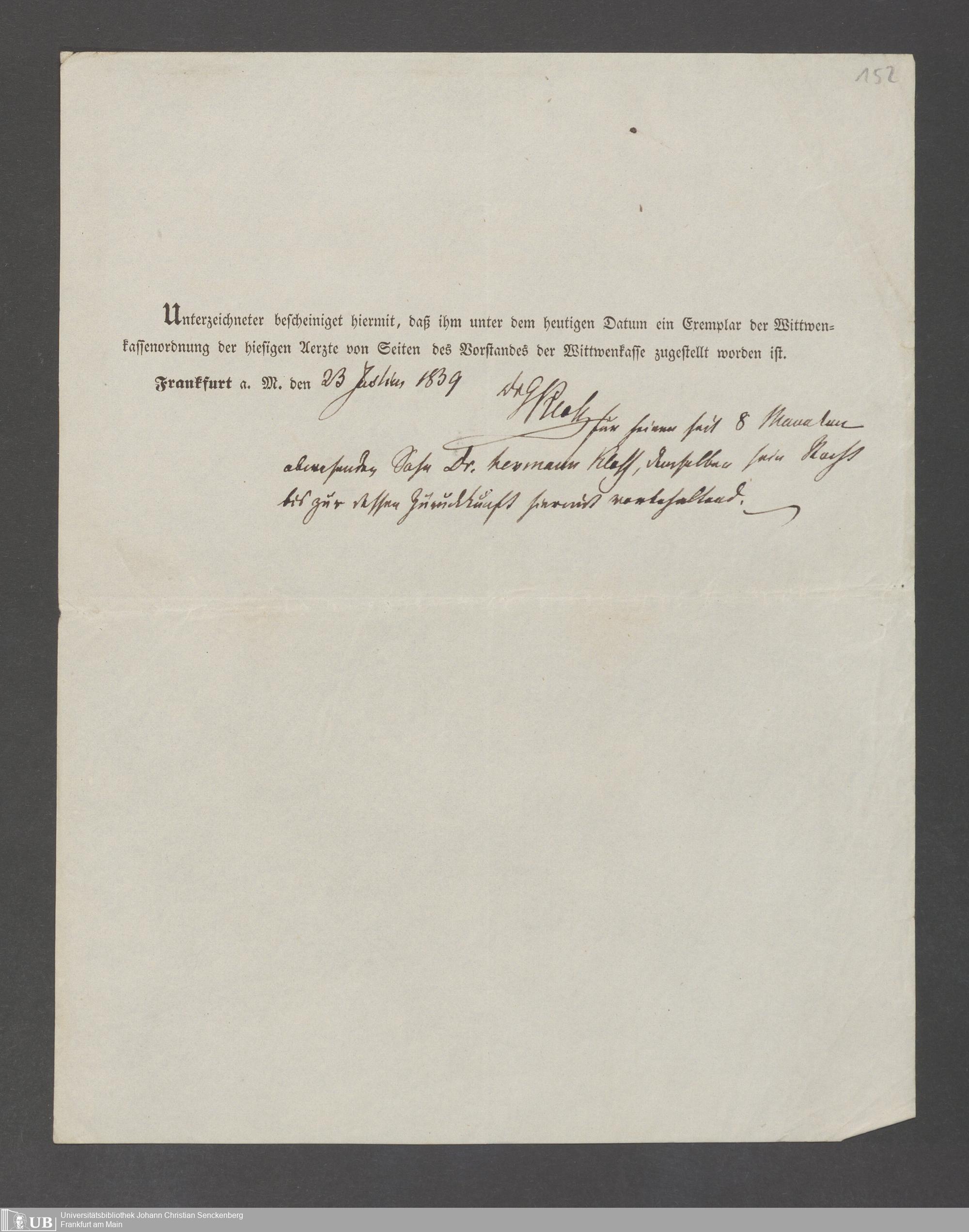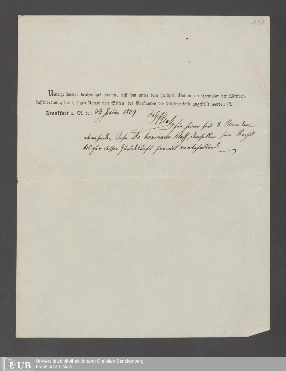 B 5 Dr. Senckenbergische Stiftung, 143 - Witwenkasse V