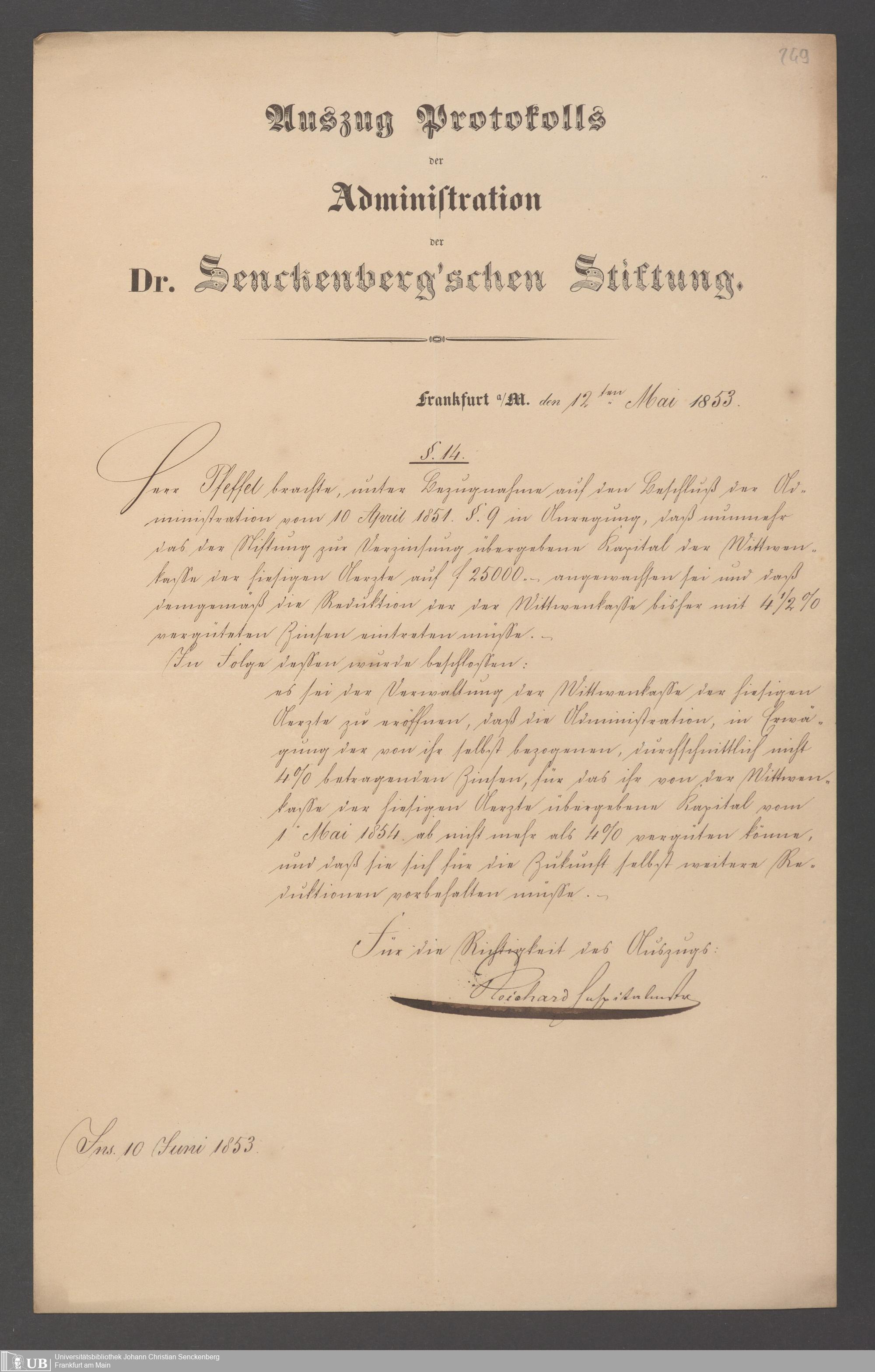 B 5 Dr. Senckenbergische Stiftung, 143 - Witwenkasse V