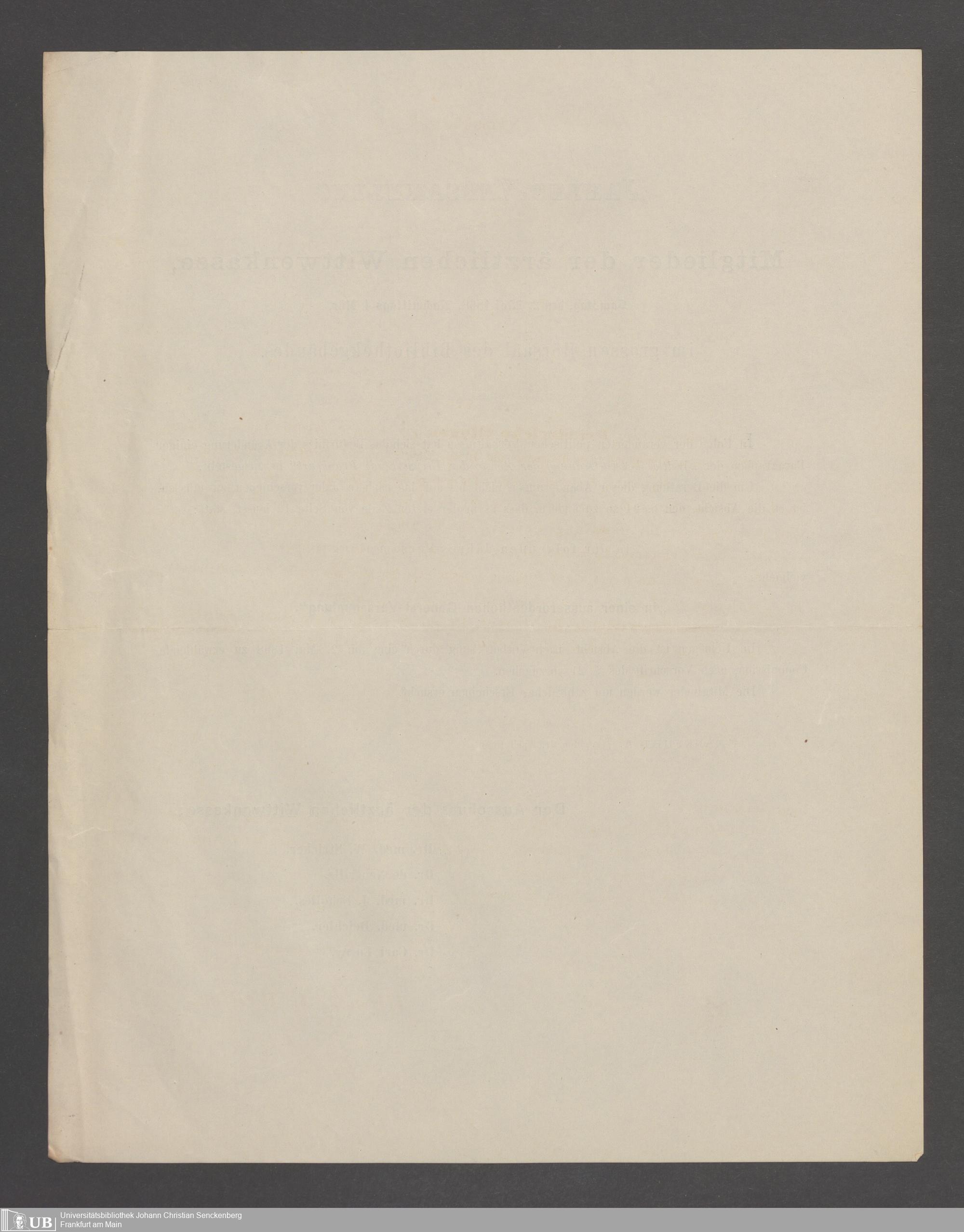 B 5 Dr. Senckenbergische Stiftung, 143 - Witwenkasse V