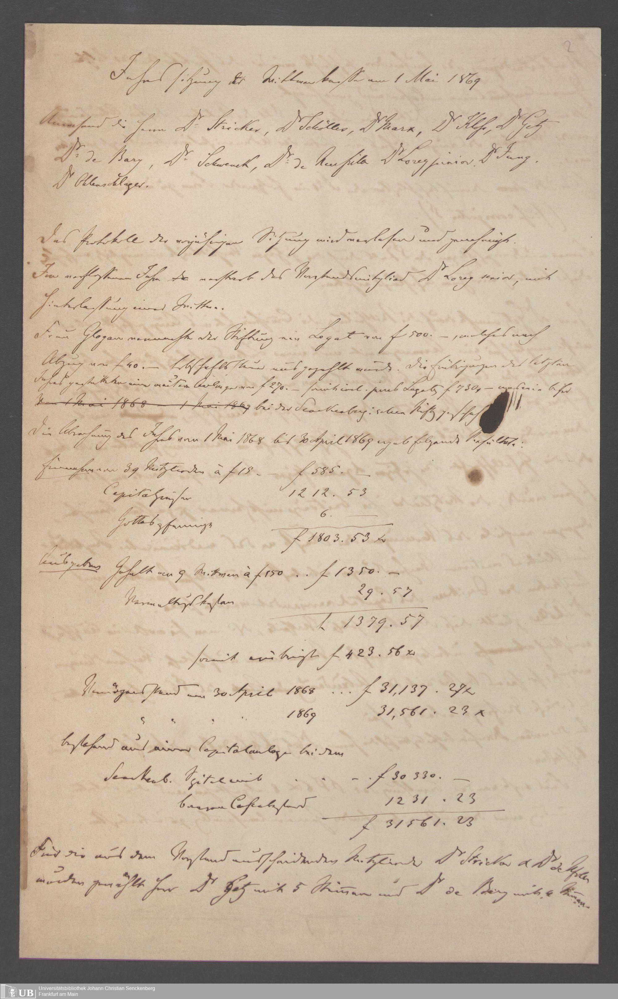 B 5 Dr. Senckenbergische Stiftung, 144 - Witwenkasse VI