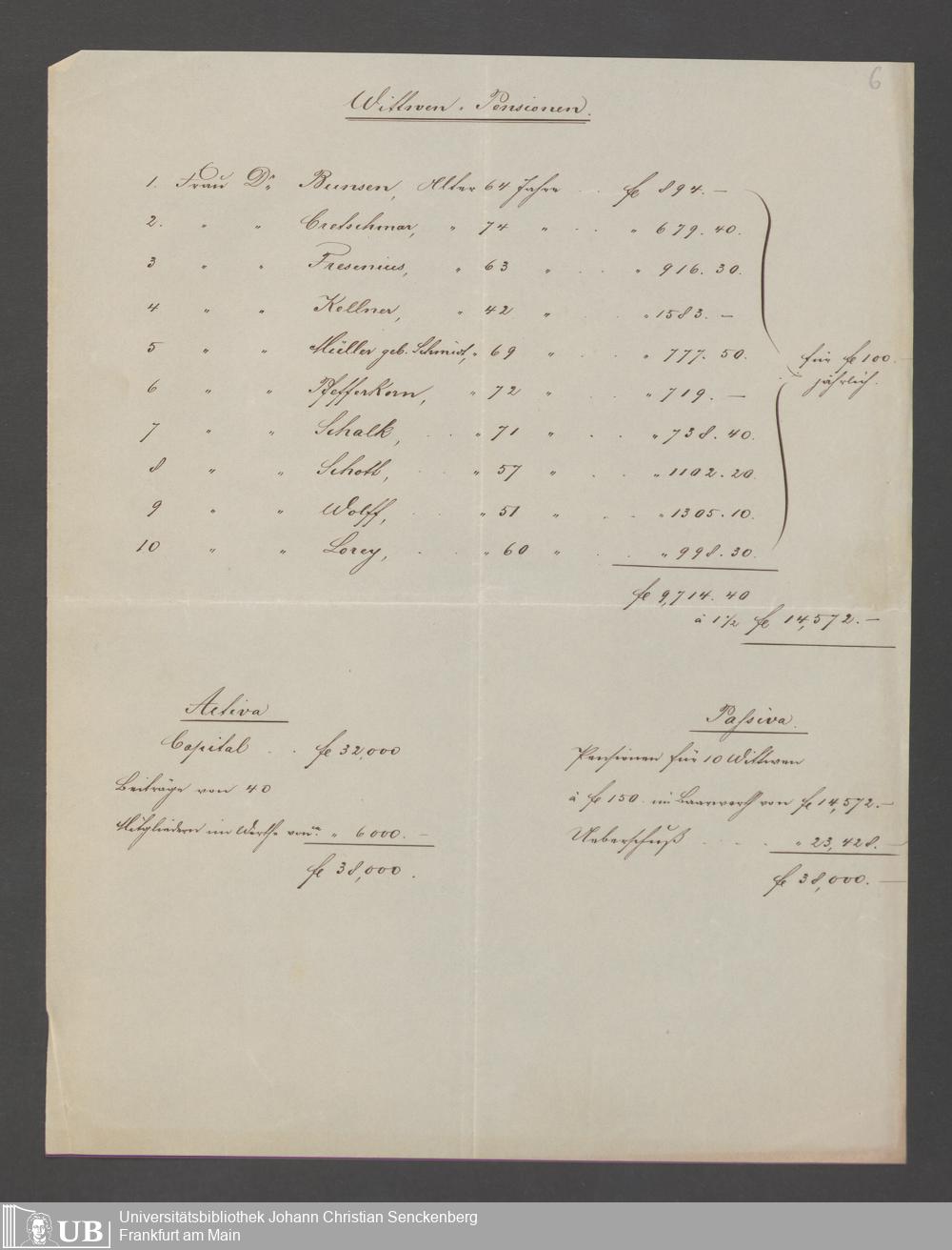 B 5 Dr. Senckenbergische Stiftung, 144 - Witwenkasse VI