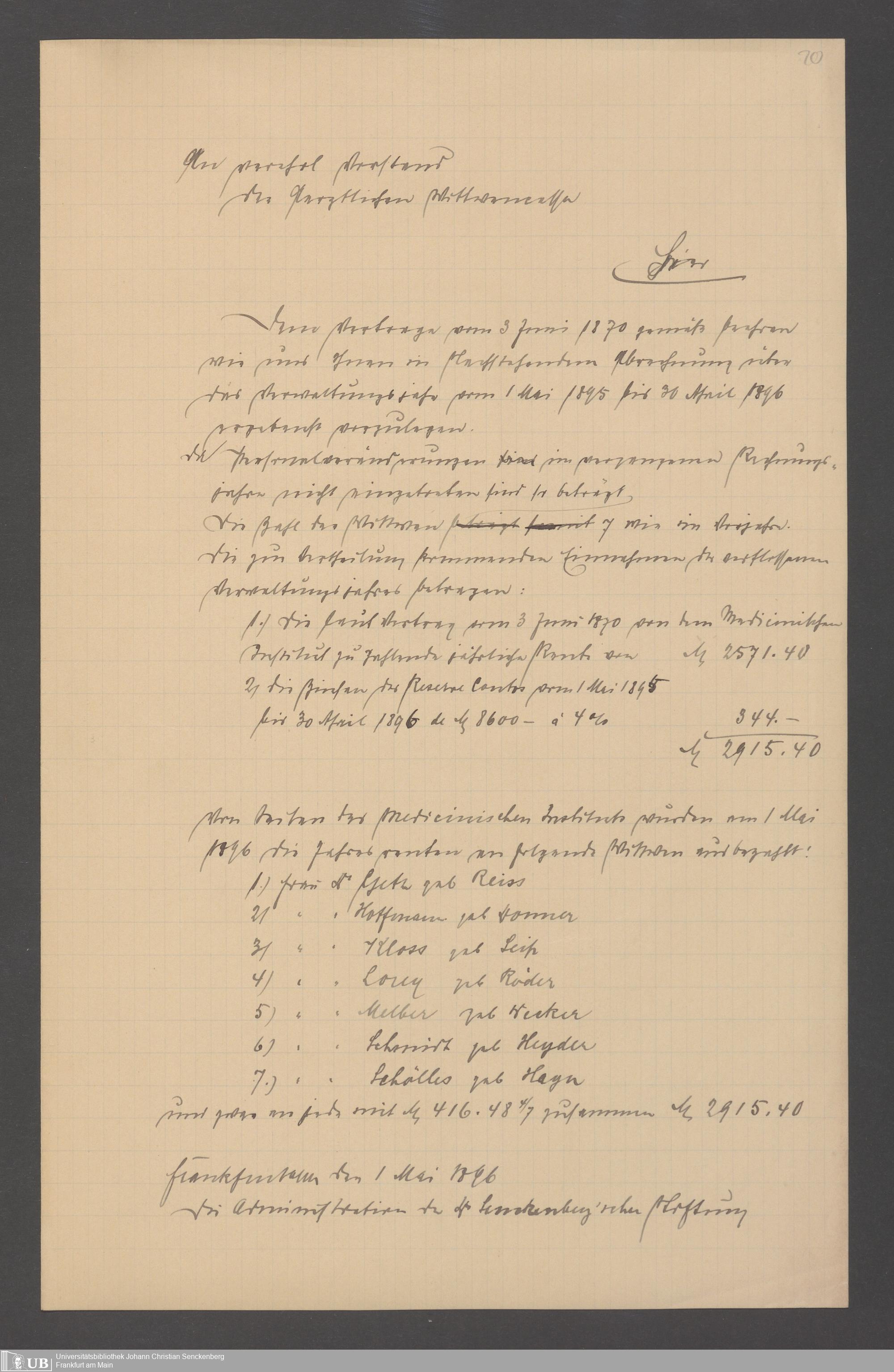 B 5 Dr. Senckenbergische Stiftung, 144 - Witwenkasse VI