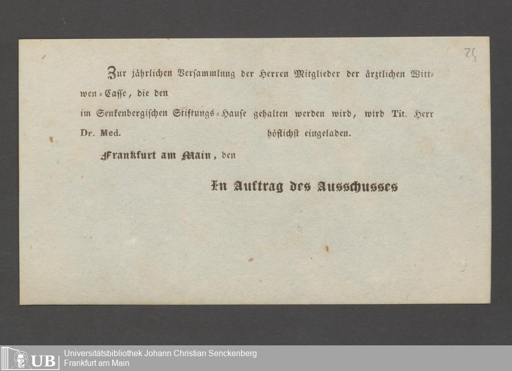 B 5 Dr. Senckenbergische Stiftung, 144 - Witwenkasse VI