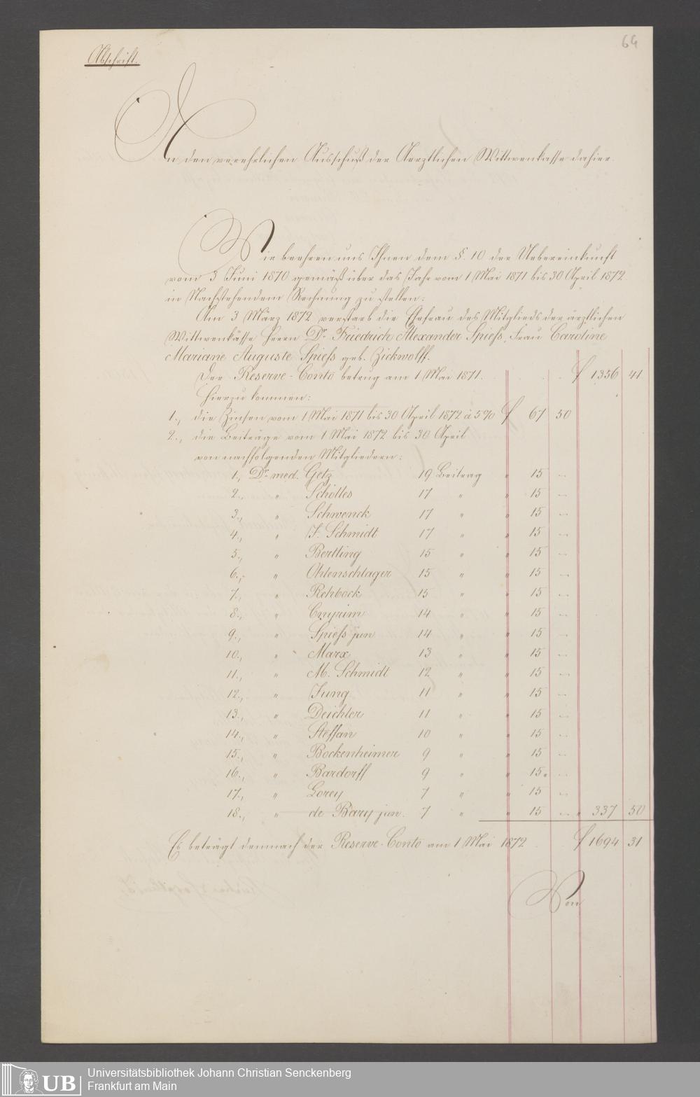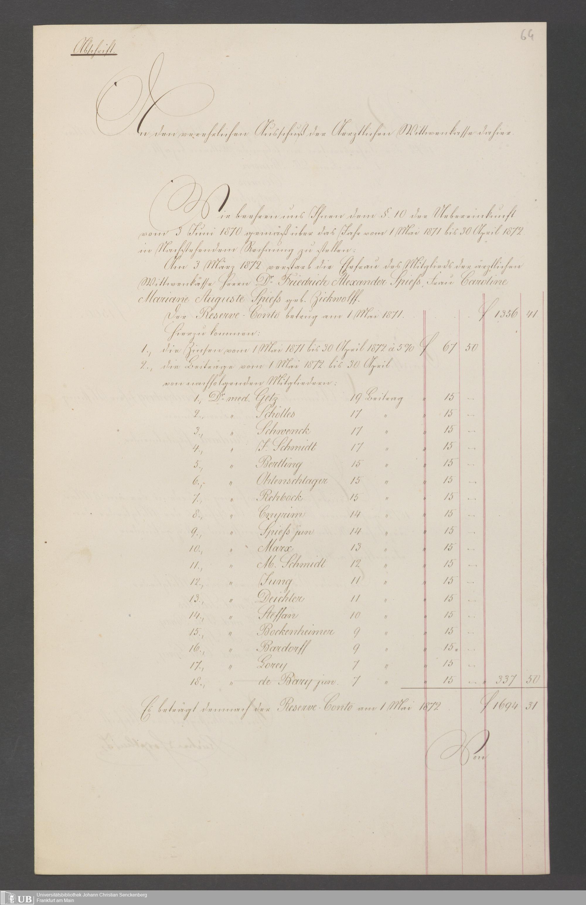 B 5 Dr. Senckenbergische Stiftung, 144 - Witwenkasse VI