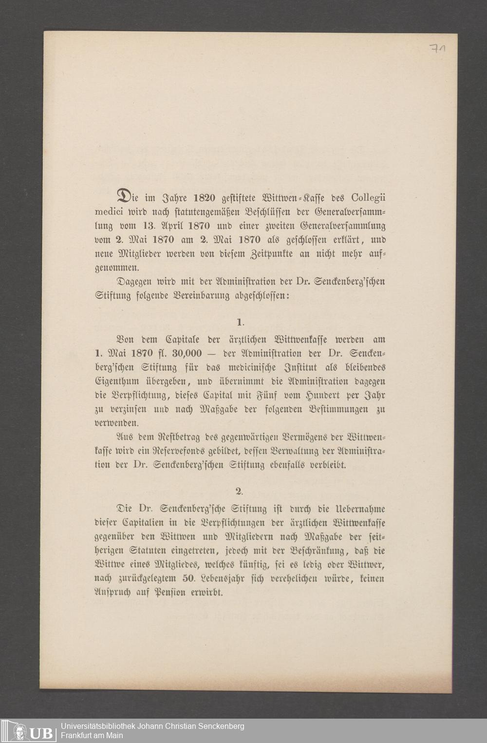 B 5 Dr. Senckenbergische Stiftung, 144 - Witwenkasse VI