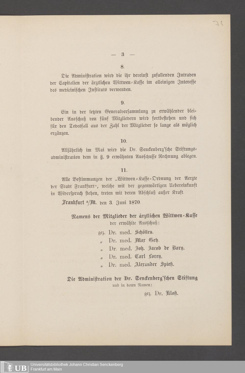 B 5 Dr. Senckenbergische Stiftung, 144 - Witwenkasse VI