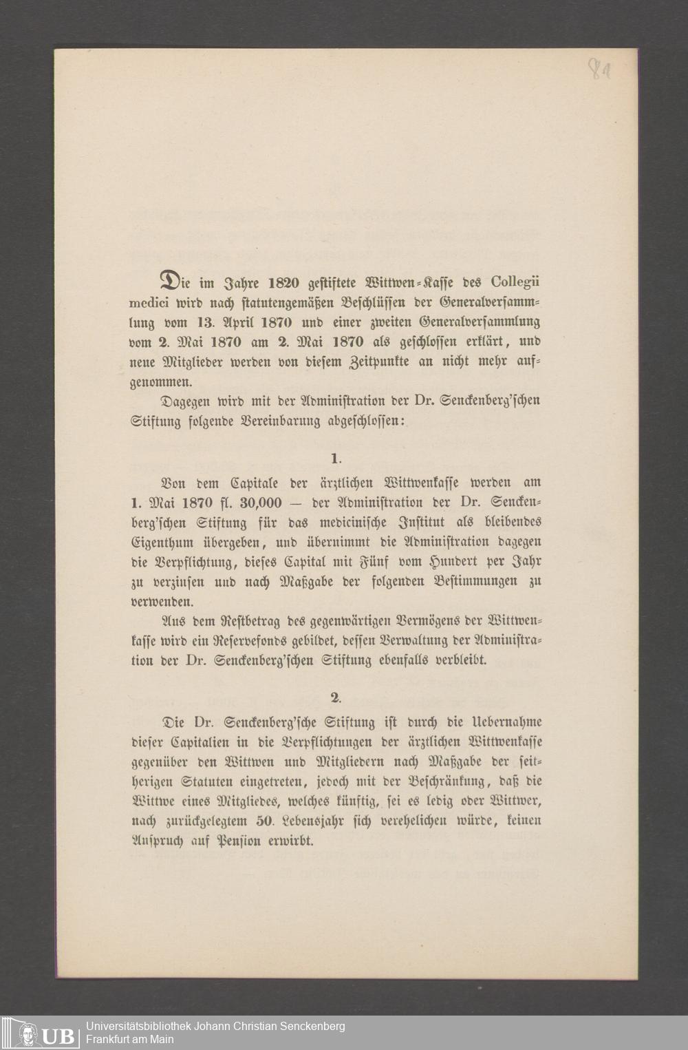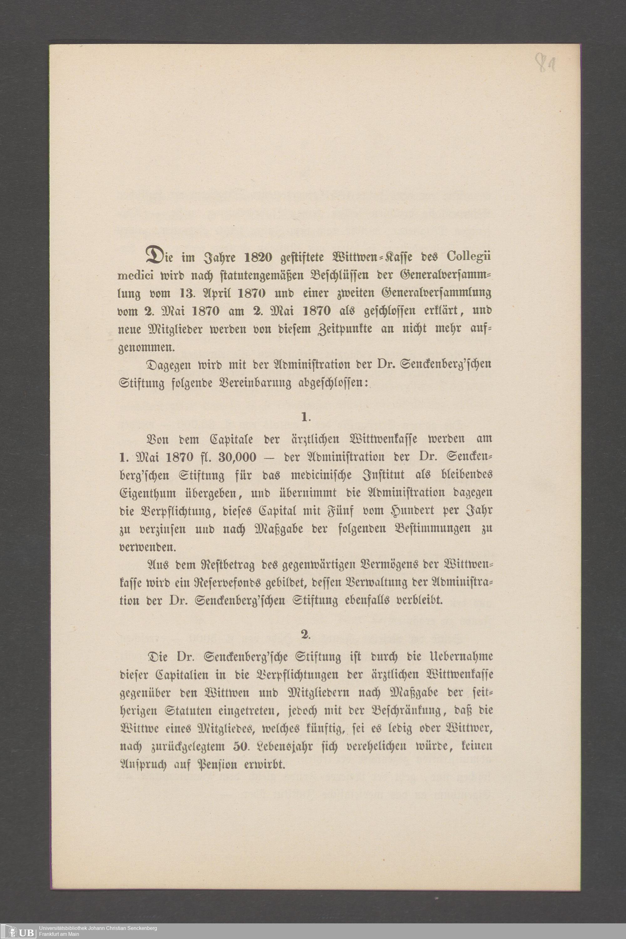 B 5 Dr. Senckenbergische Stiftung, 144 - Witwenkasse VI