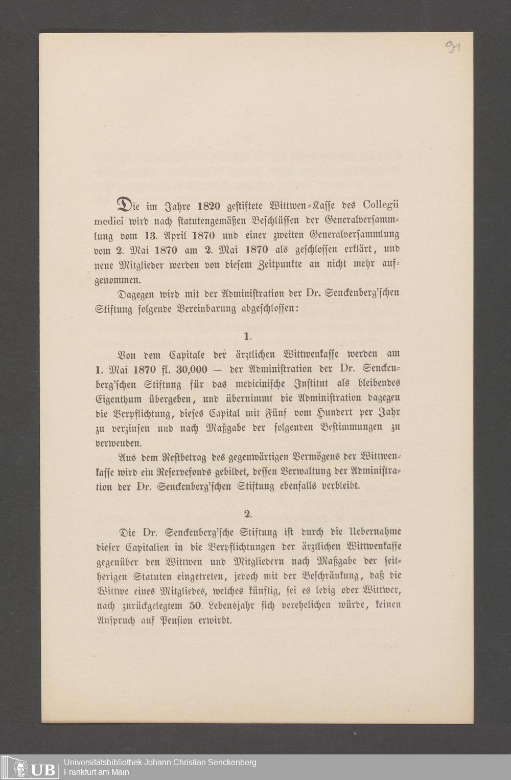 B 5 Dr. Senckenbergische Stiftung, 144 - Witwenkasse VI
