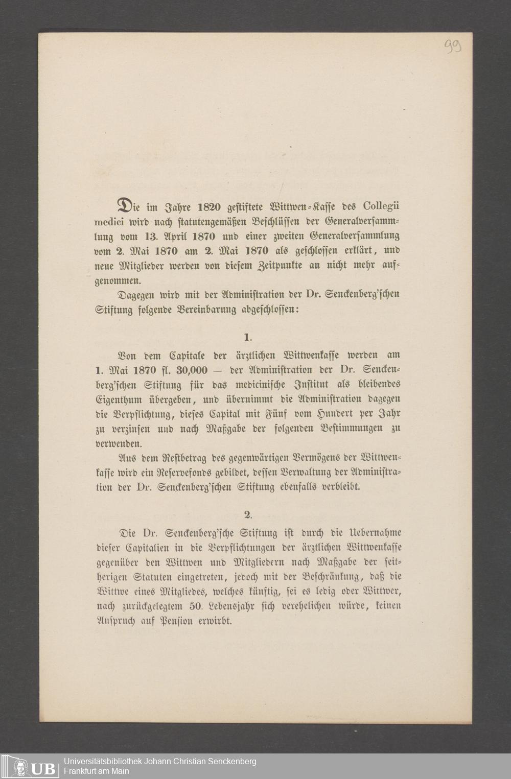 B 5 Dr. Senckenbergische Stiftung, 144 - Witwenkasse VI