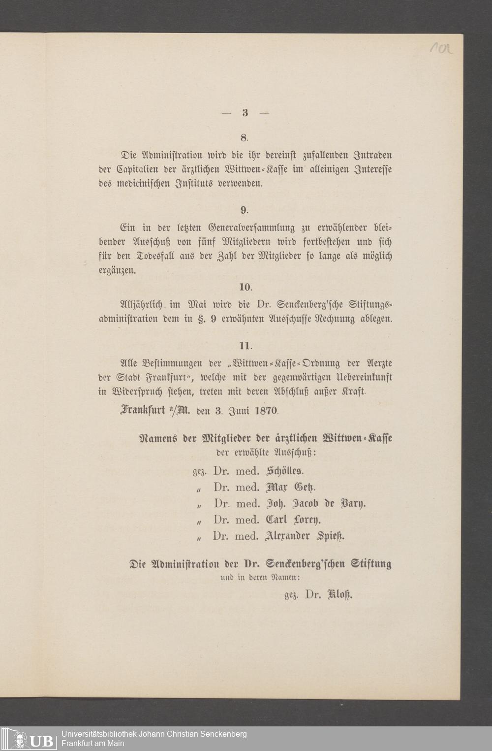 B 5 Dr. Senckenbergische Stiftung, 144 - Witwenkasse VI