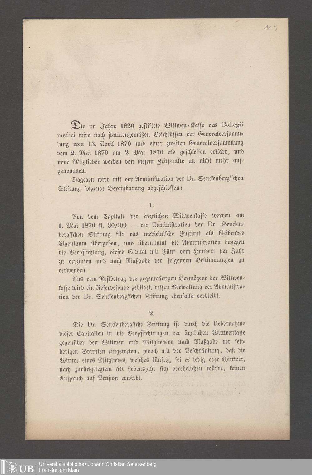 B 5 Dr. Senckenbergische Stiftung, 144 - Witwenkasse VI