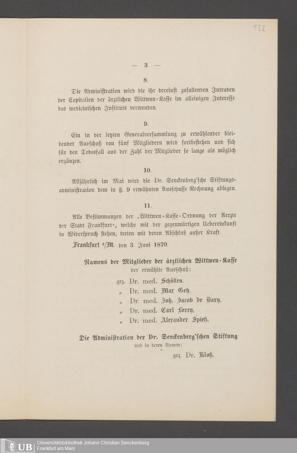 B 5 Dr. Senckenbergische Stiftung, 144 - Witwenkasse VI