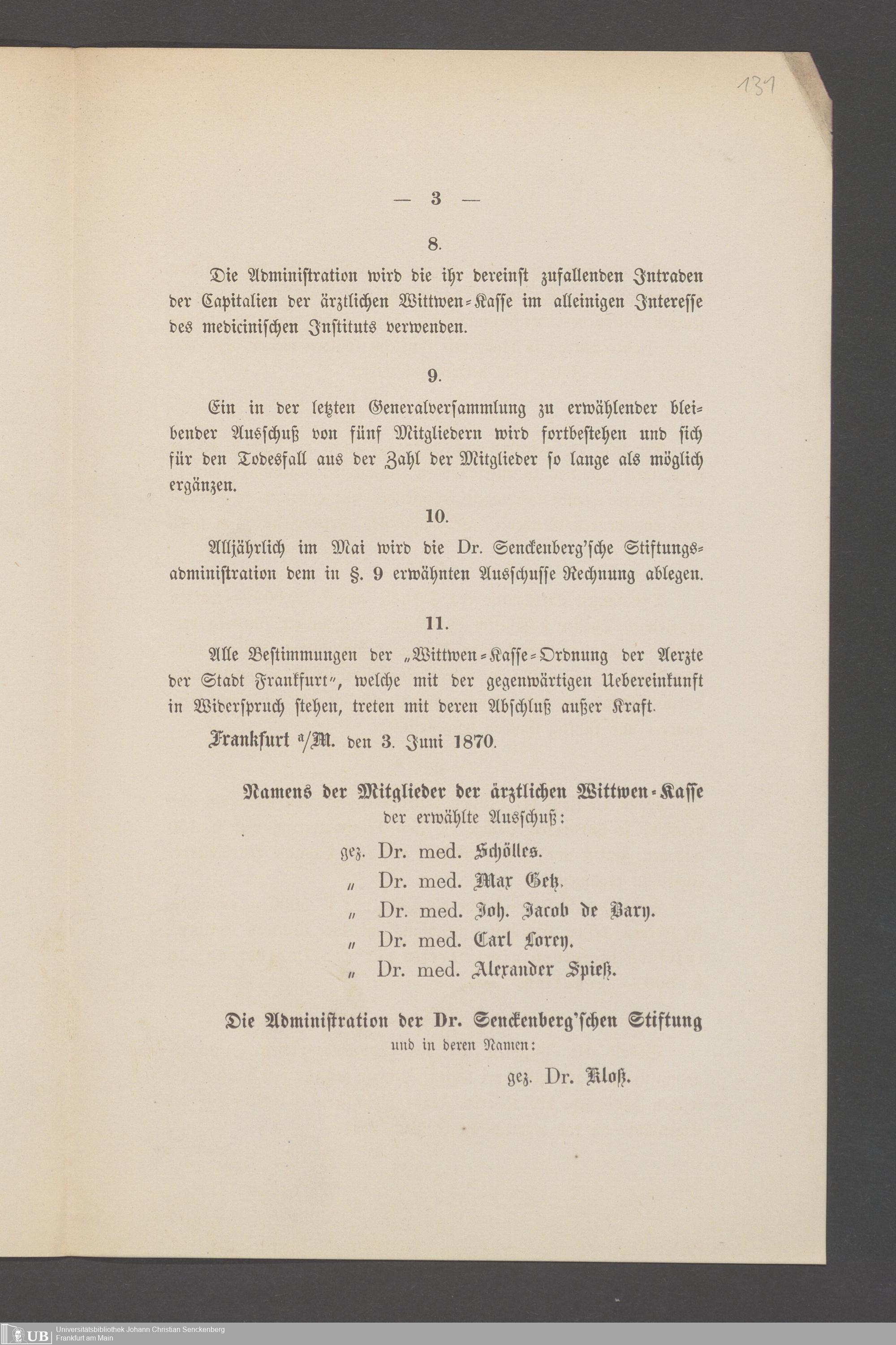 B 5 Dr. Senckenbergische Stiftung, 144 - Witwenkasse VI