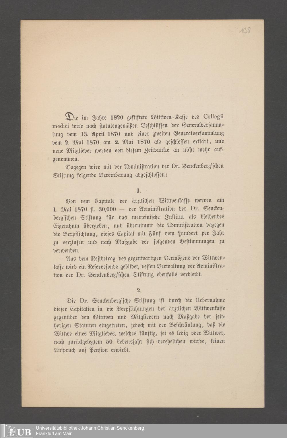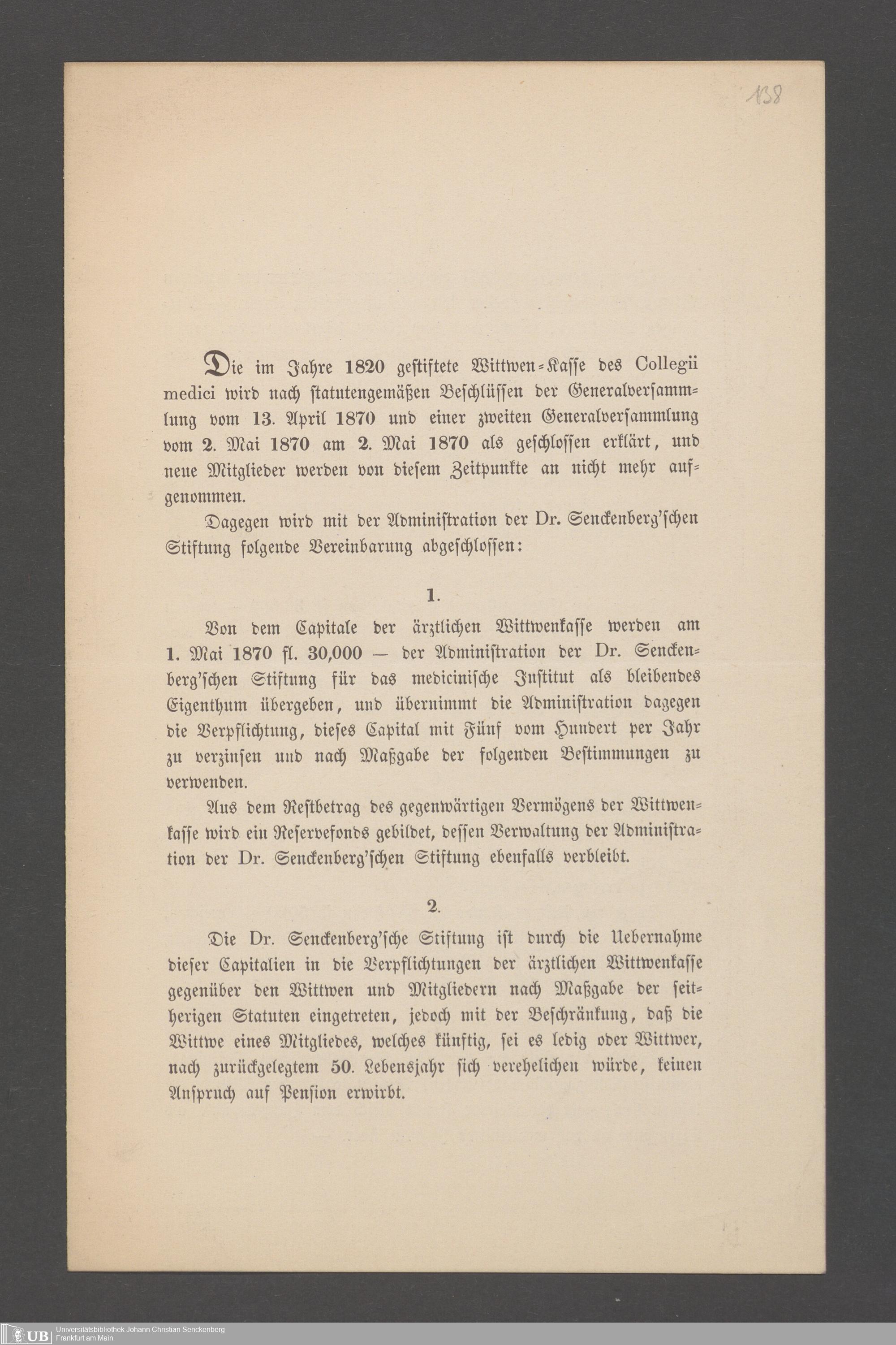 B 5 Dr. Senckenbergische Stiftung, 144 - Witwenkasse VI