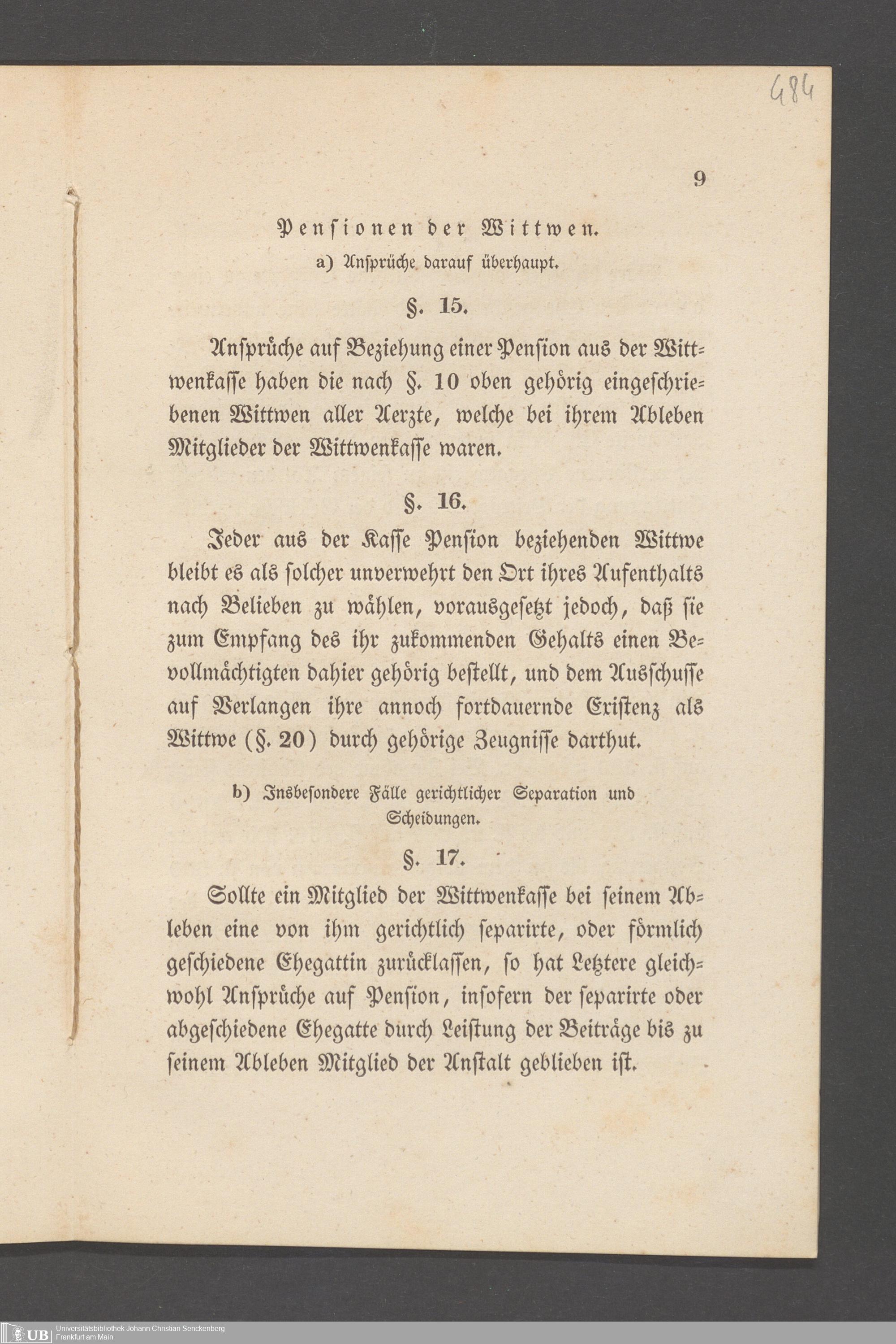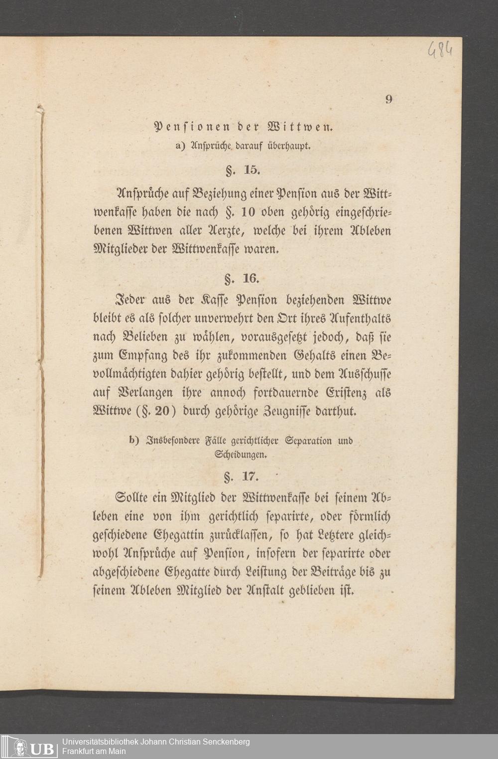 B 5 Dr. Senckenbergische Stiftung, 145 - Witwenkasse VII