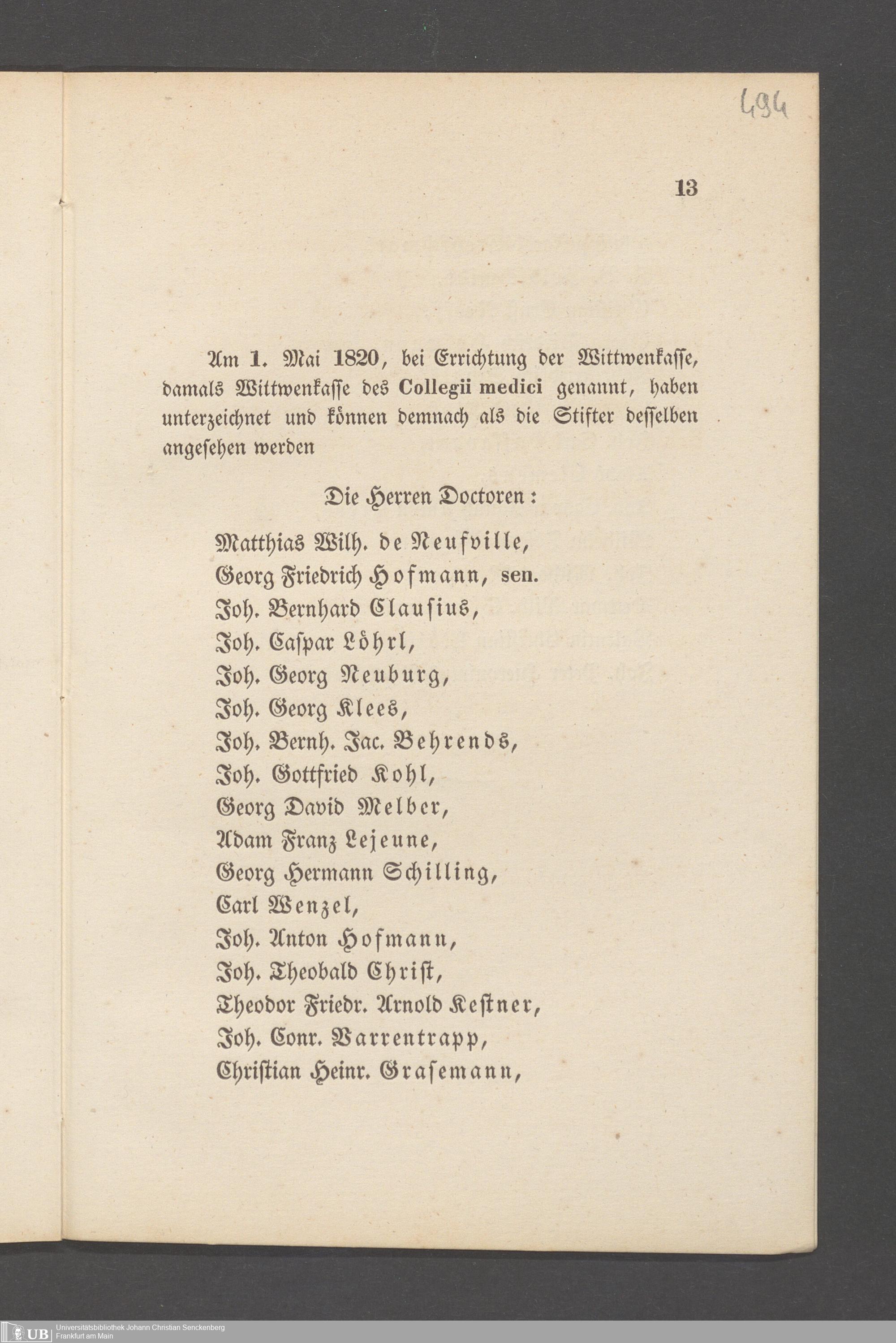 B 5 Dr. Senckenbergische Stiftung, 145 - Witwenkasse VII