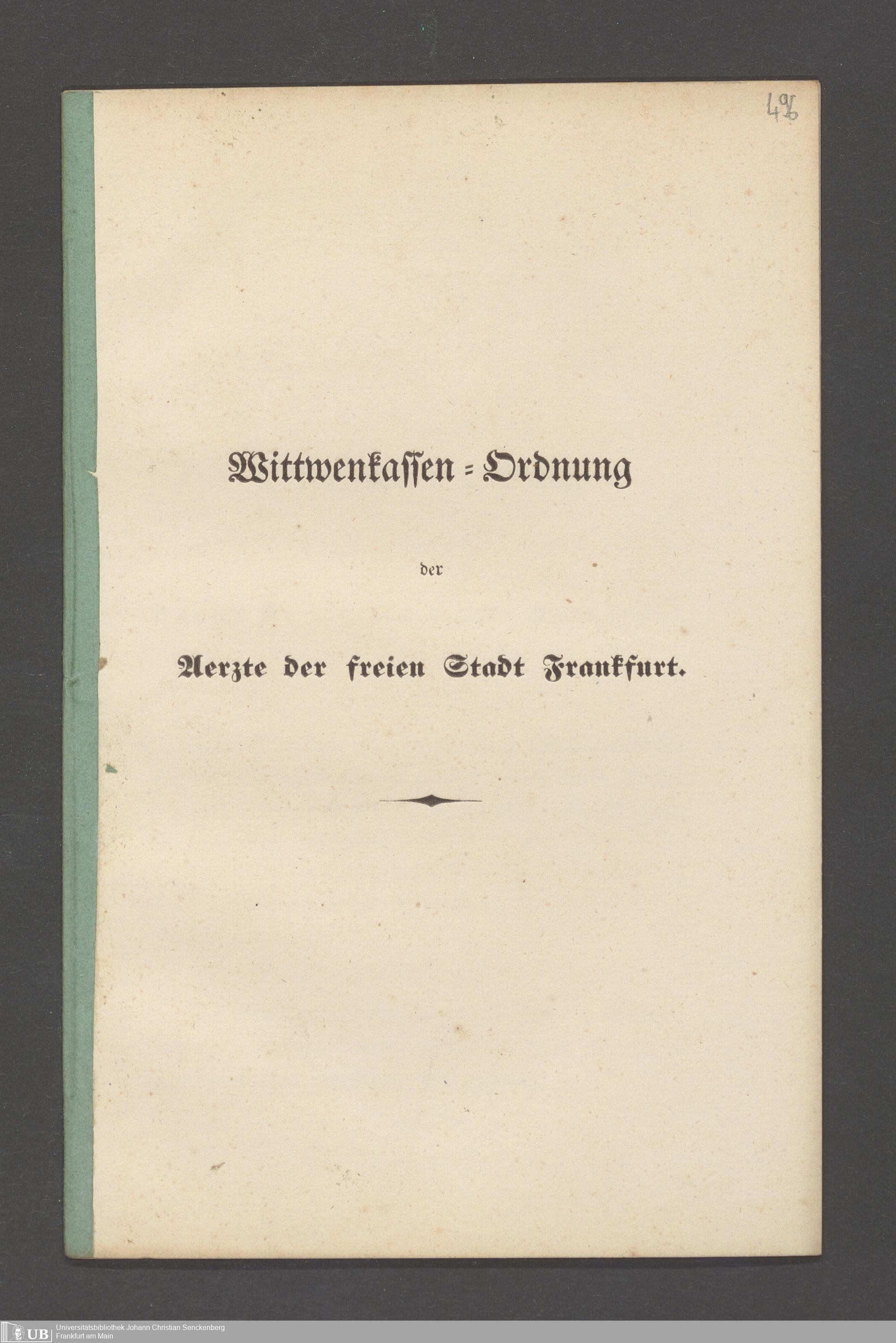 B 5 Dr. Senckenbergische Stiftung, 145 - Witwenkasse VII
