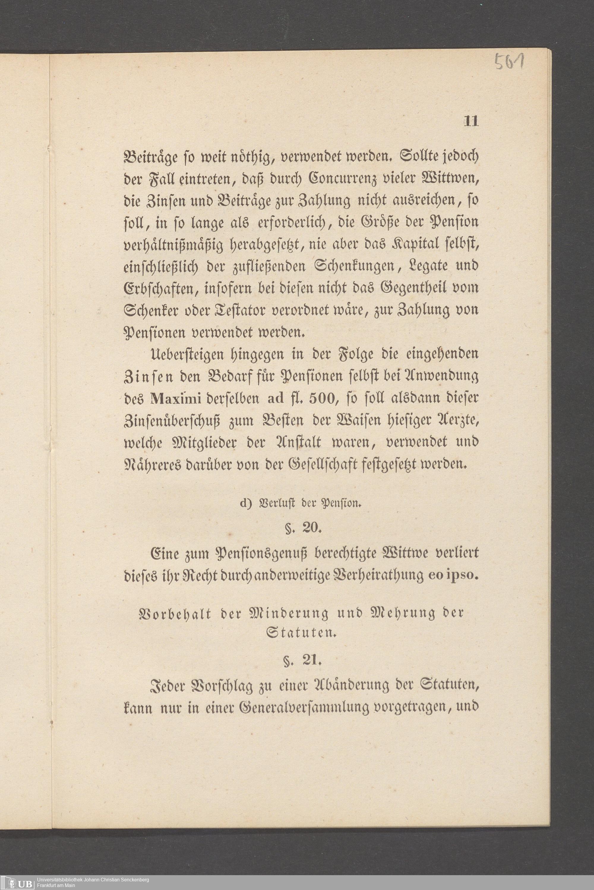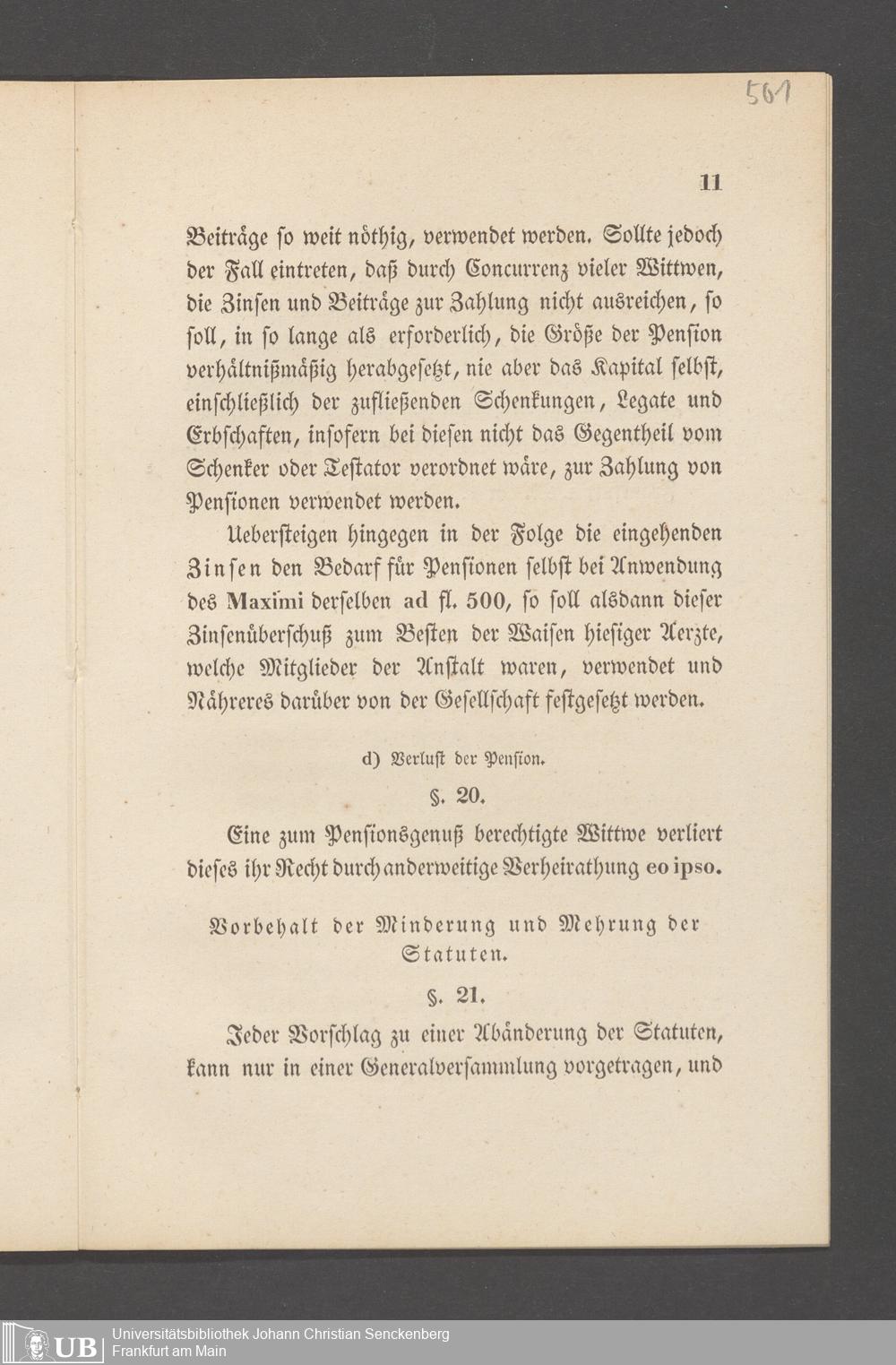B 5 Dr. Senckenbergische Stiftung, 145 - Witwenkasse VII