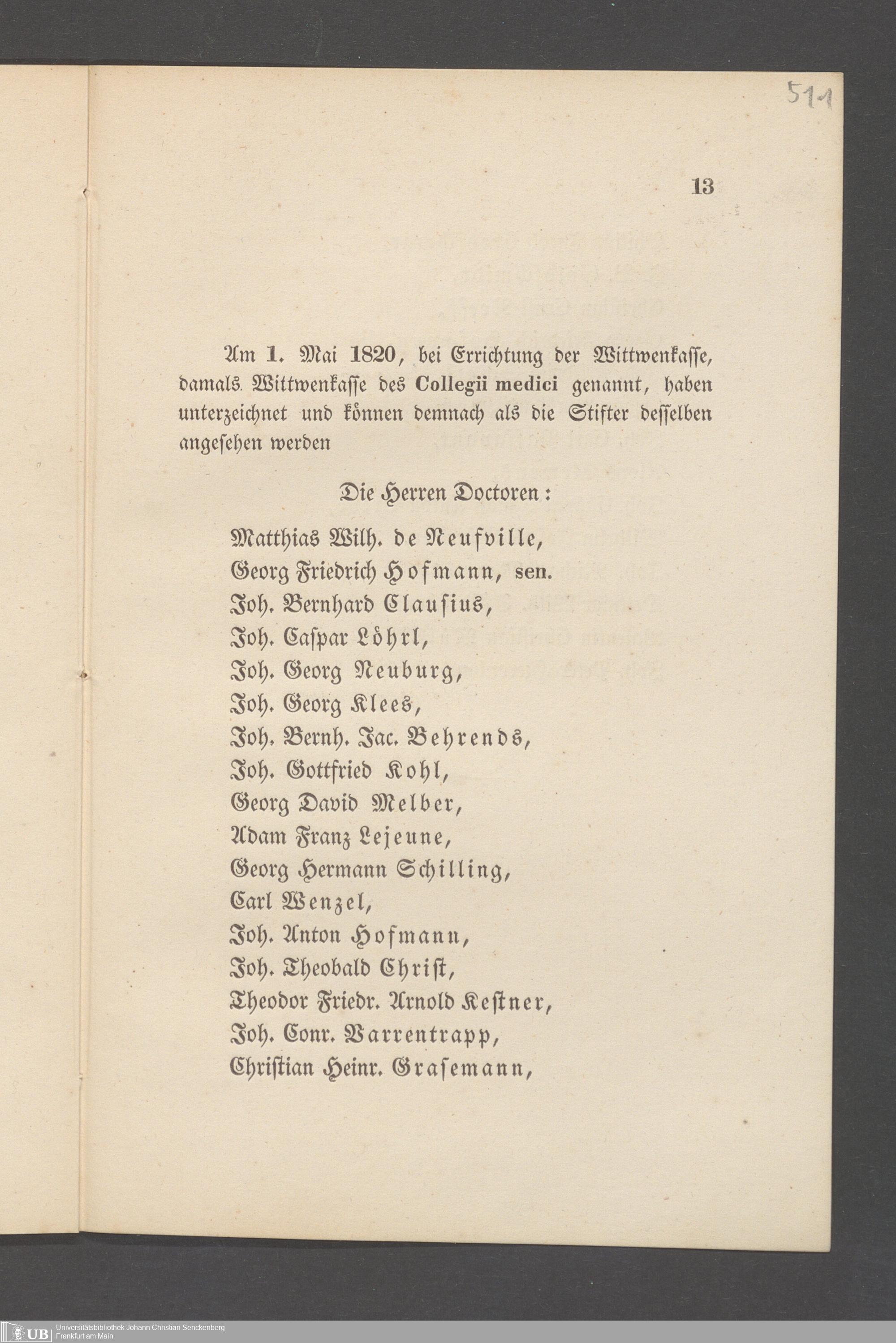 B 5 Dr. Senckenbergische Stiftung, 145 - Witwenkasse VII
