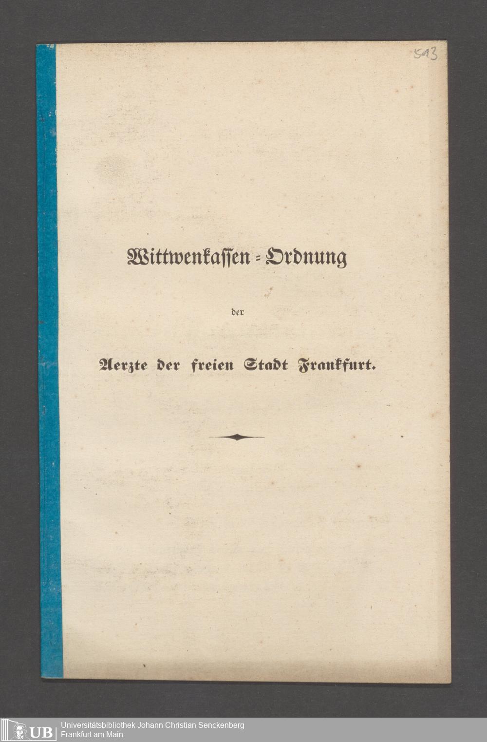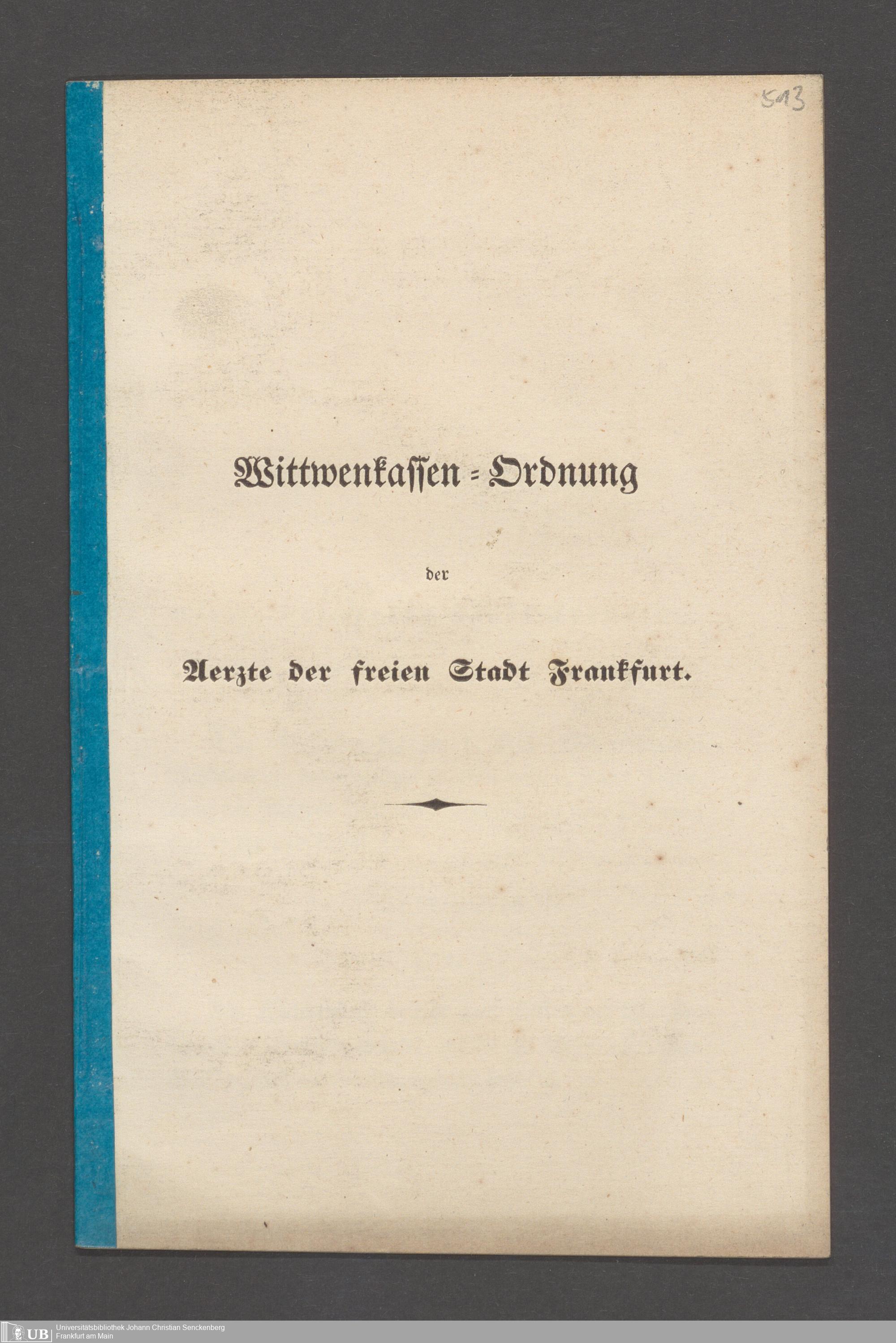 B 5 Dr. Senckenbergische Stiftung, 145 - Witwenkasse VII